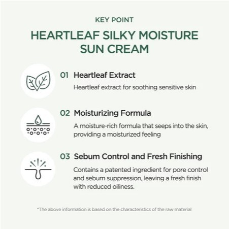 ANUA Heartleaf Silky Moisture Sun Cream , SPA 50 + PA + , Protetor Solar Orgânio , Hidratante , Leve , Acabamento Frash