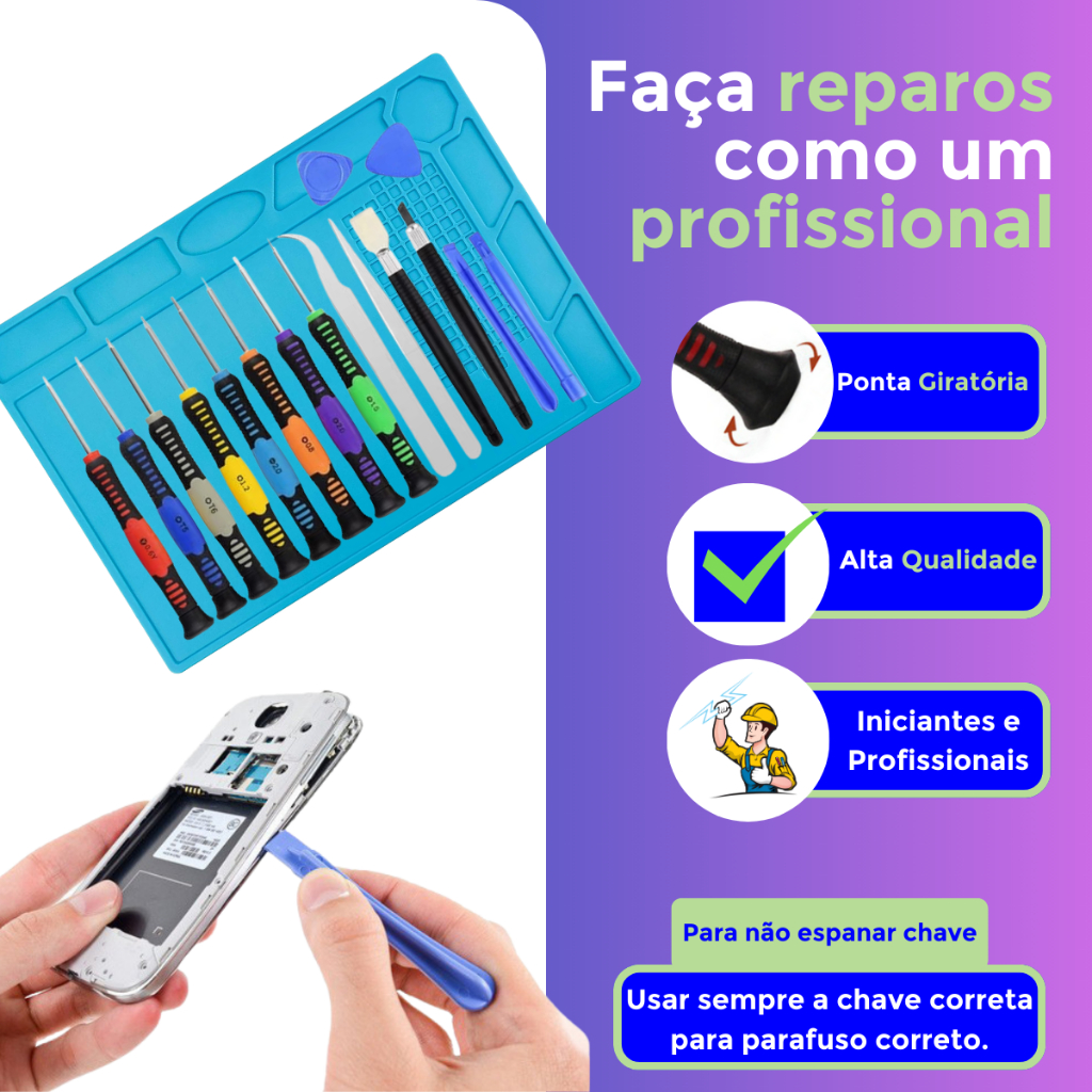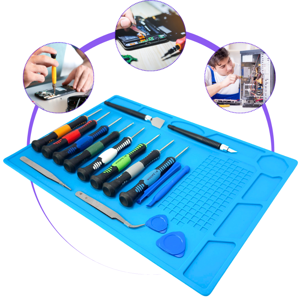 Kit Manta Antiestática 32x23cm com Chaves de Precisão 16 peças Estação Trabalho Resistente a Calor
