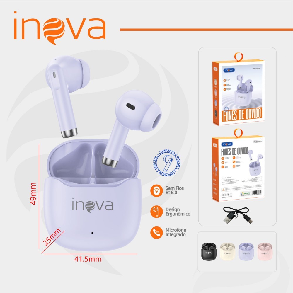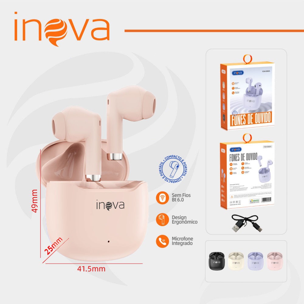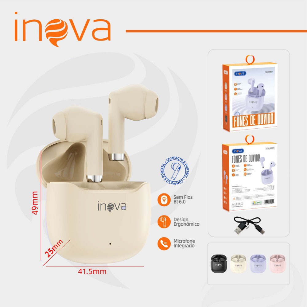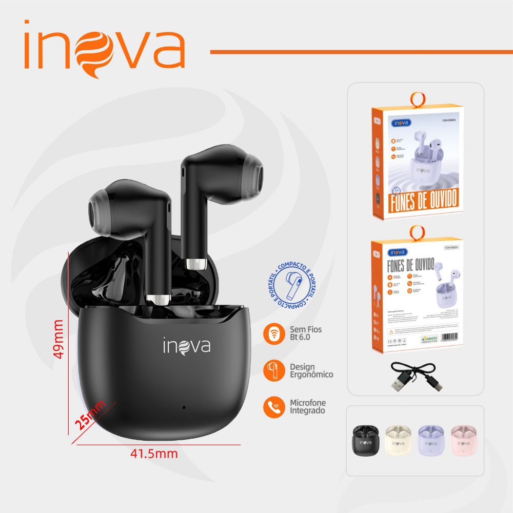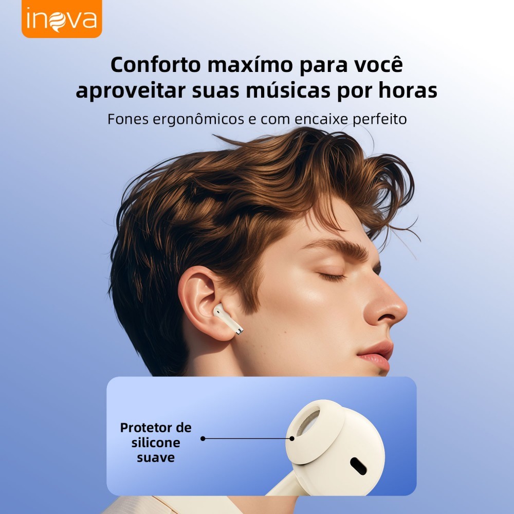 INOVA Fone De Ouvido Bluetooth 6.0 Toque de Impressão Digital 15H Autonomia ANC Cancelando Ruído