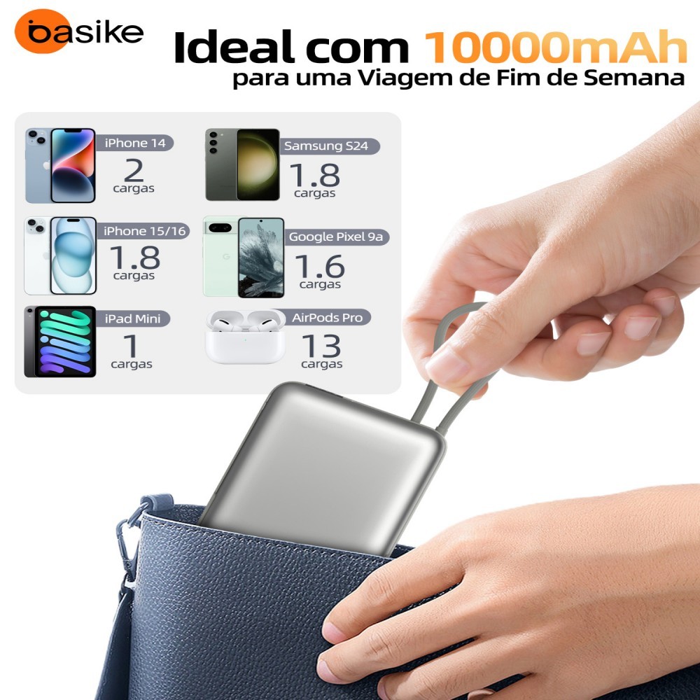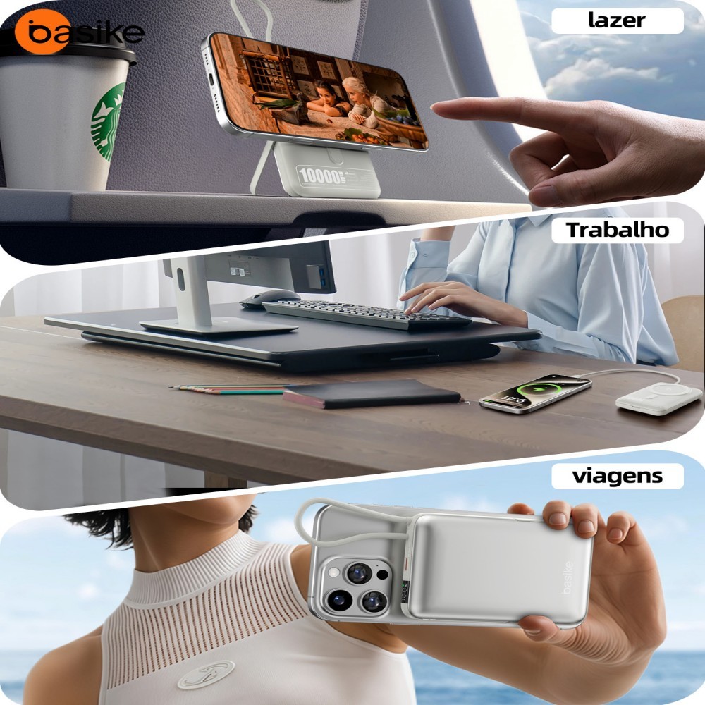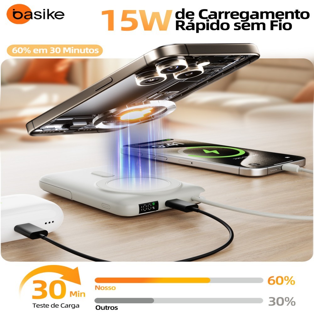 Basike Mini Power Bank Carregador Portátil Magnético Por Indução 10000mAh Magsafe PD 22.5W Sem Fio Universal