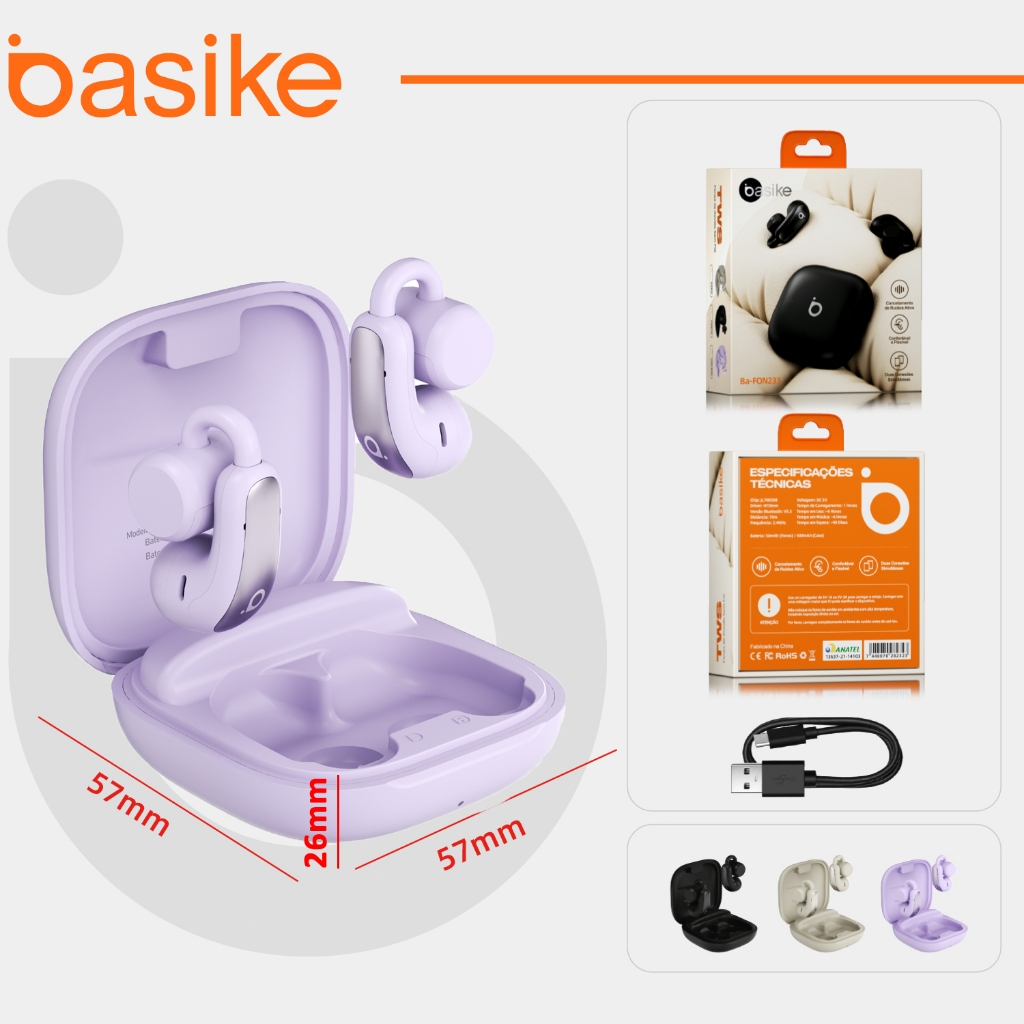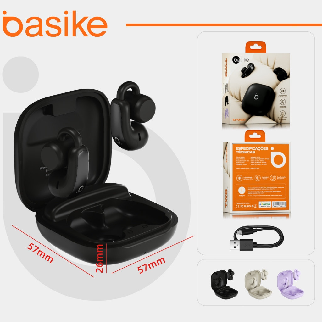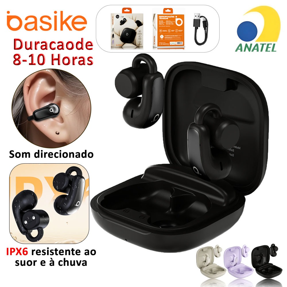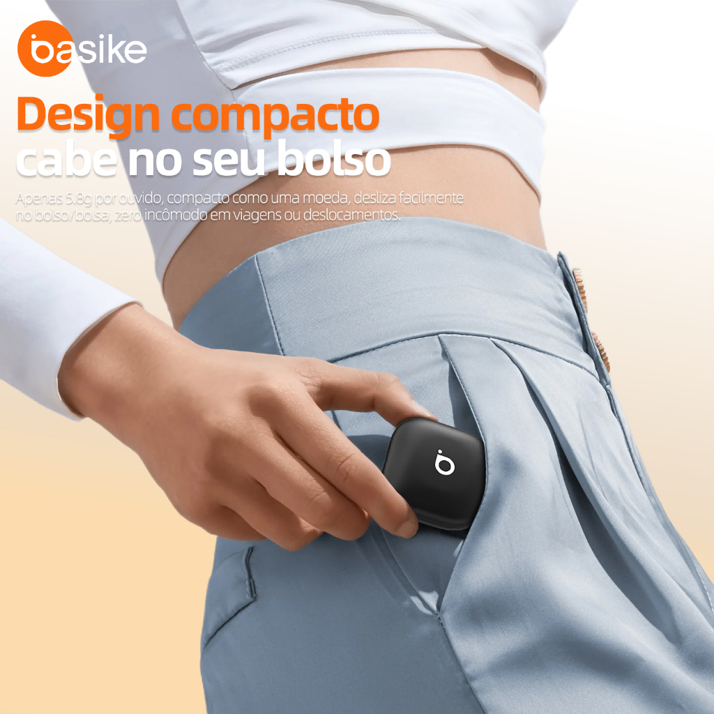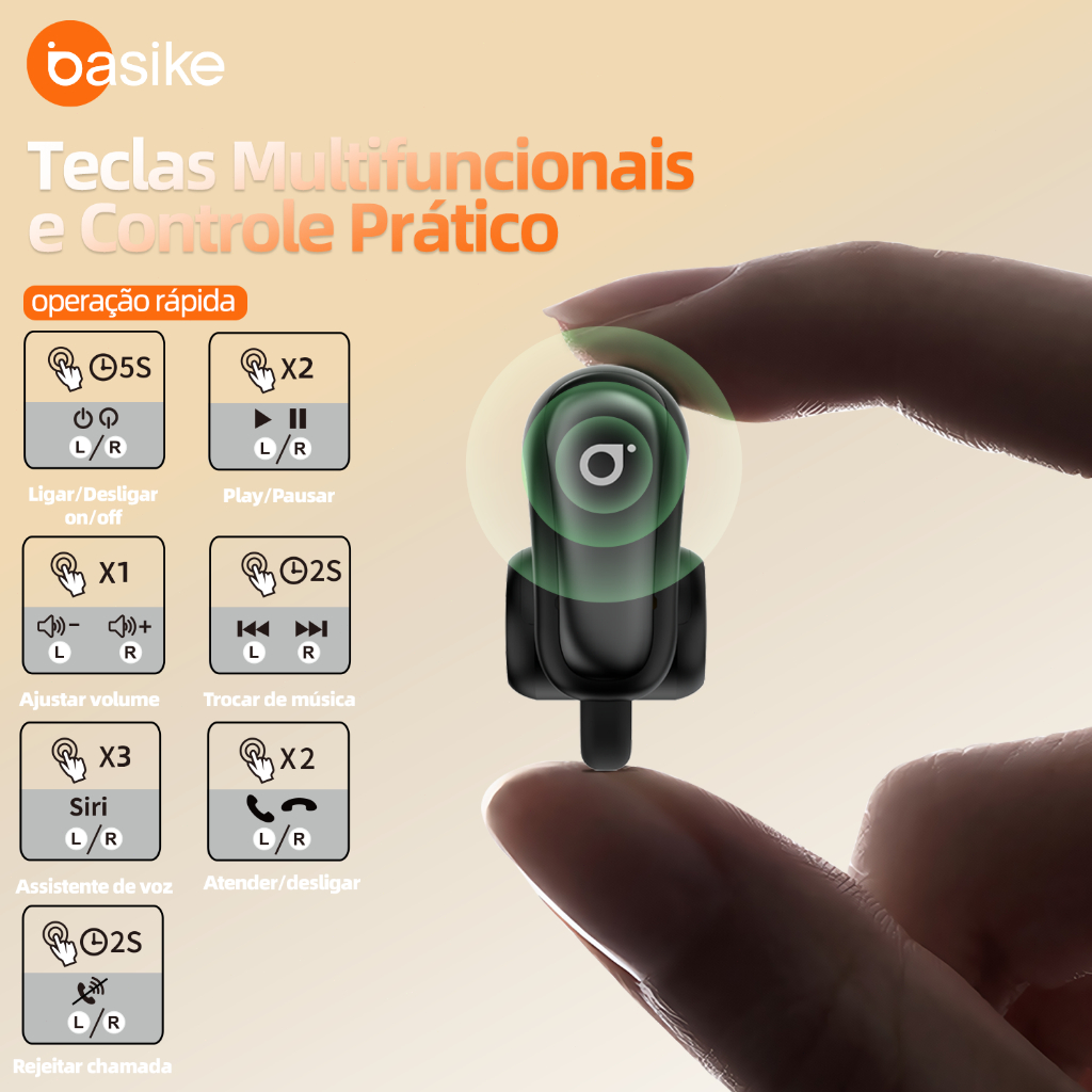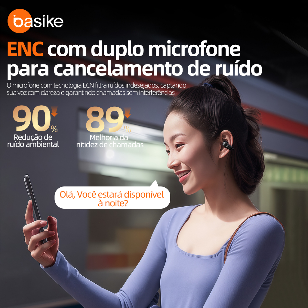 Basike Fone De Ouvido Bluetooth IPX6 Duracaode 8-10H Som Direcionado ENC Com Duplo Microfonepara