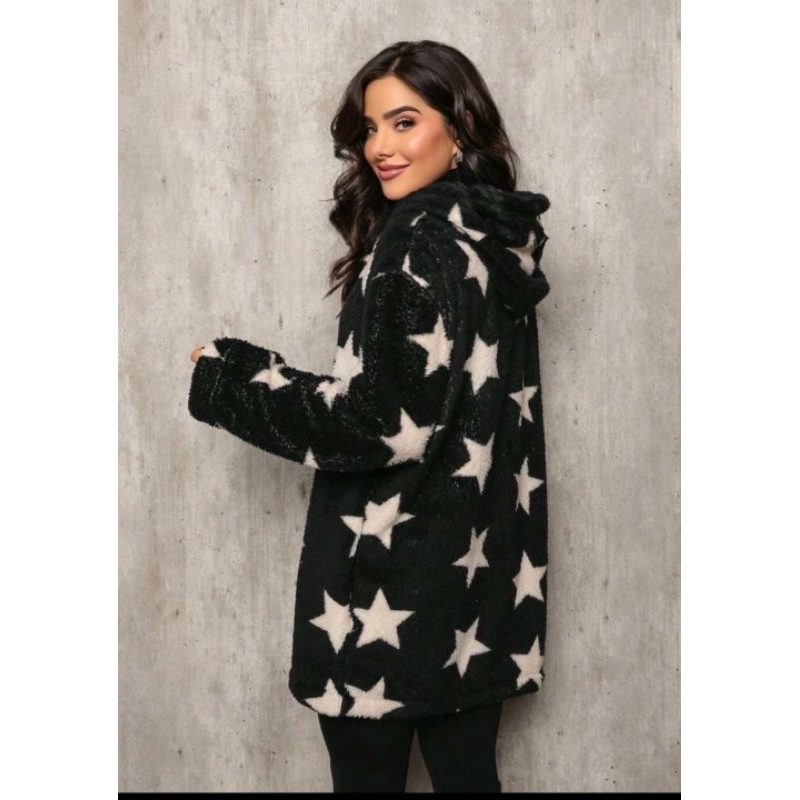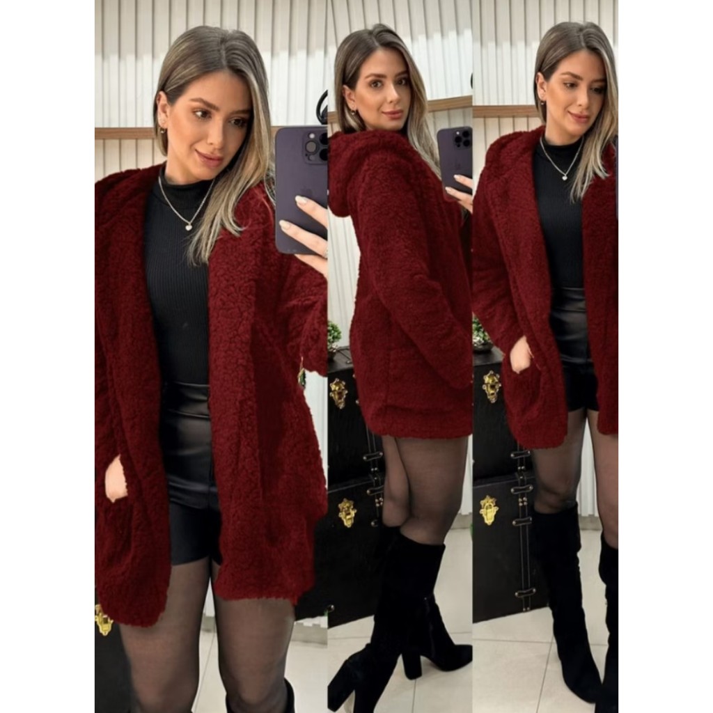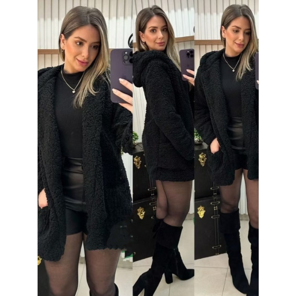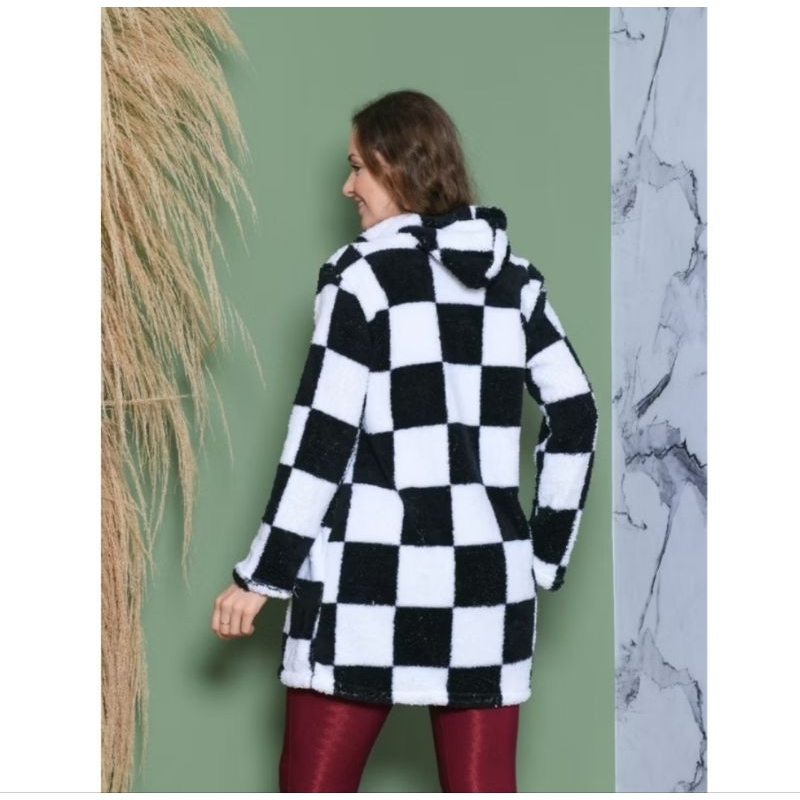 casaco Teddy xadrez com capuz para inverno