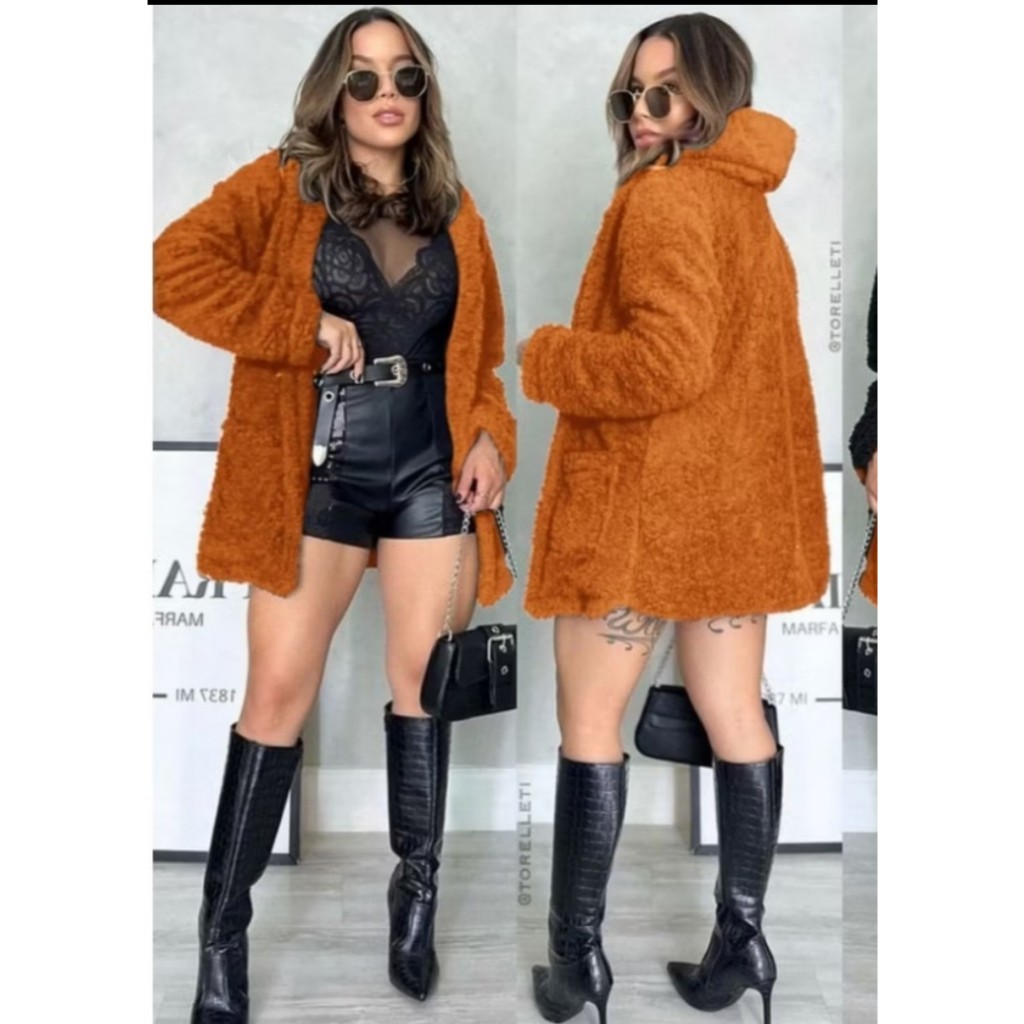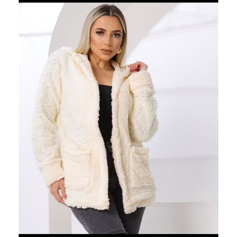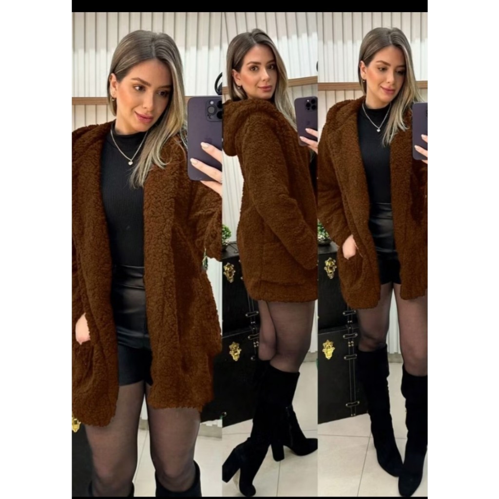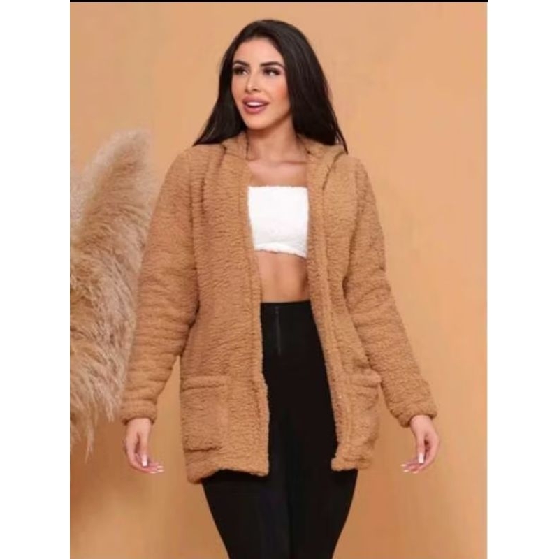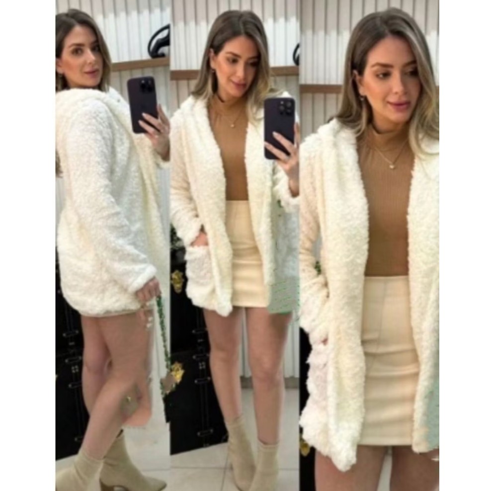 casaco Teddy xadrez com capuz para inverno