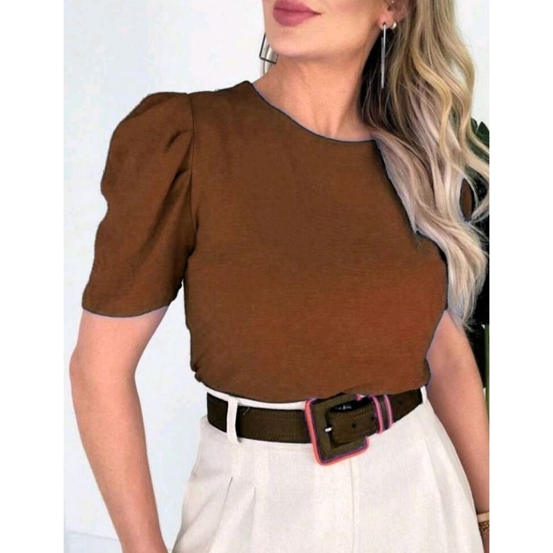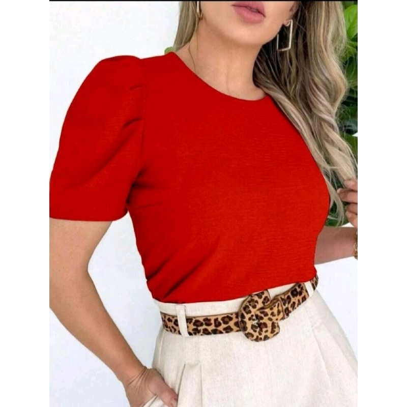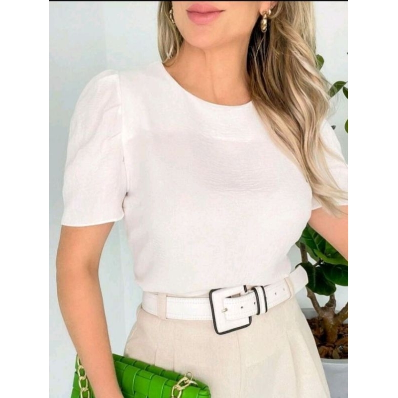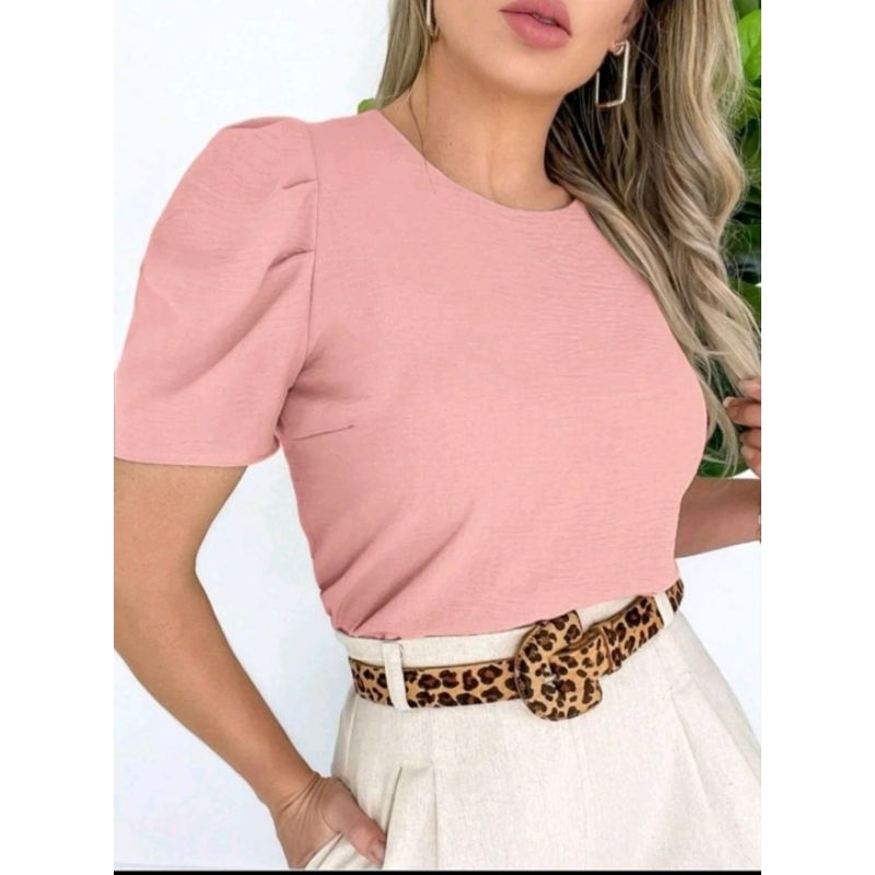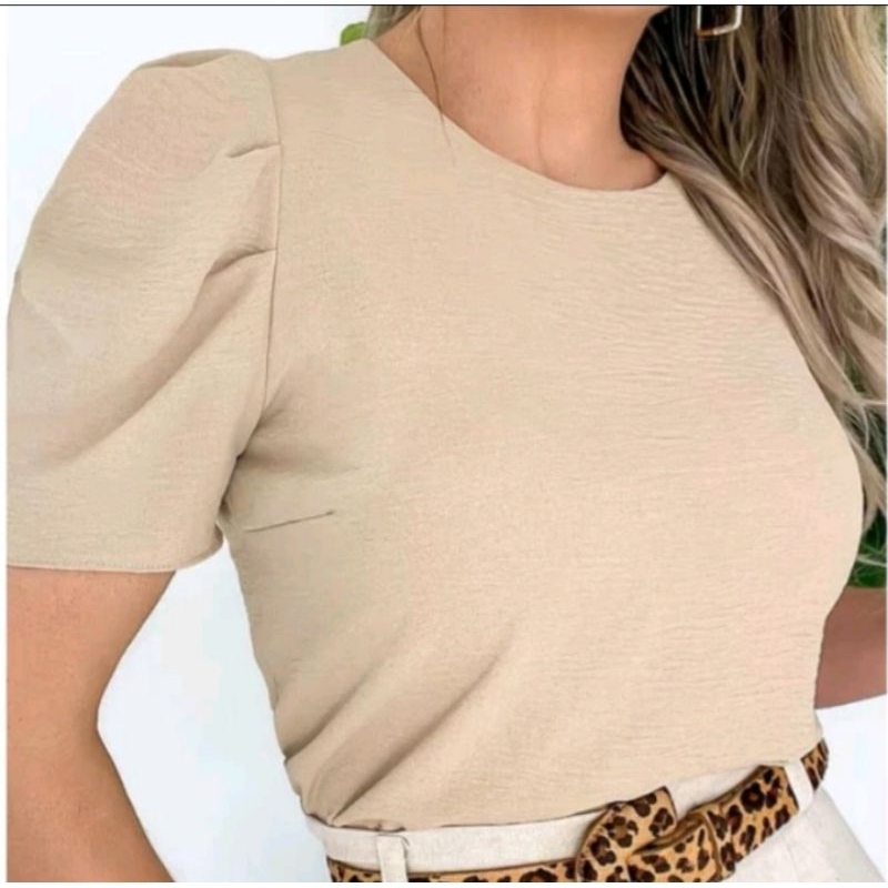 tecido duna bluza feminina manga bufante super elegante soltinha moda verão