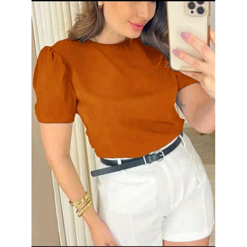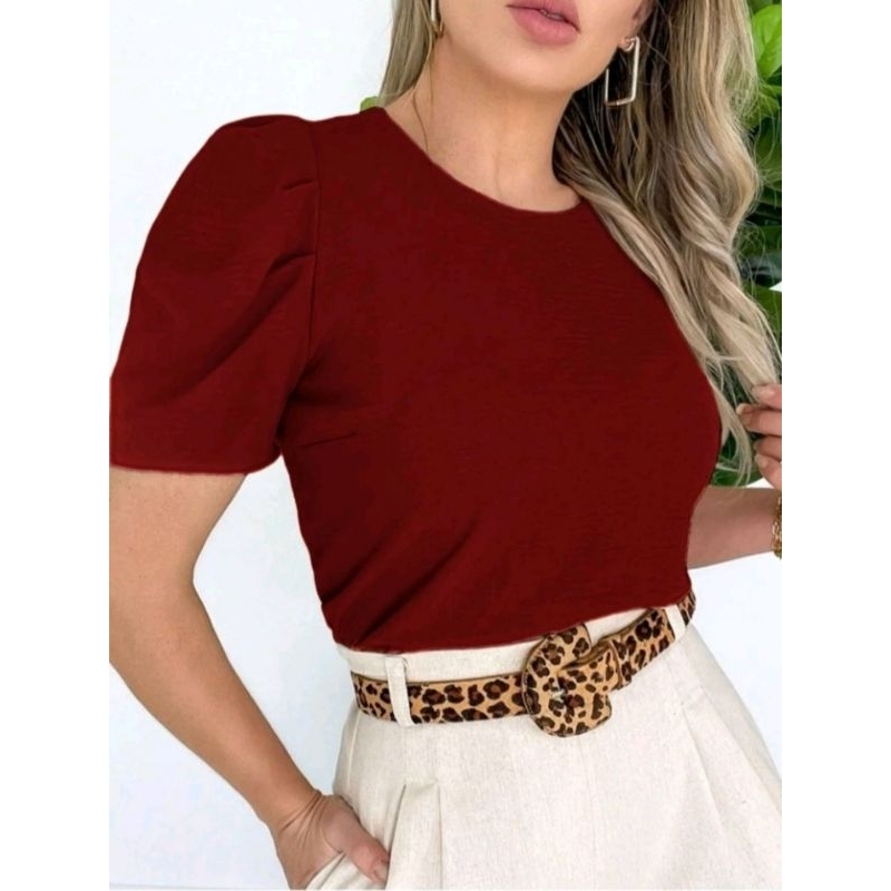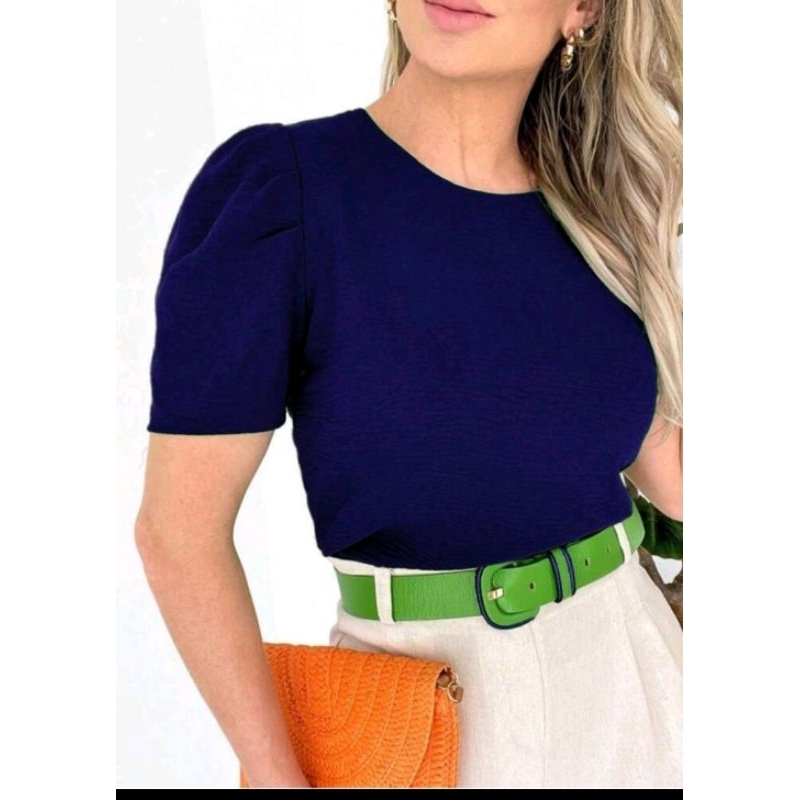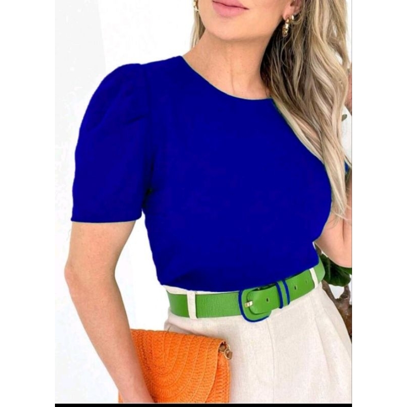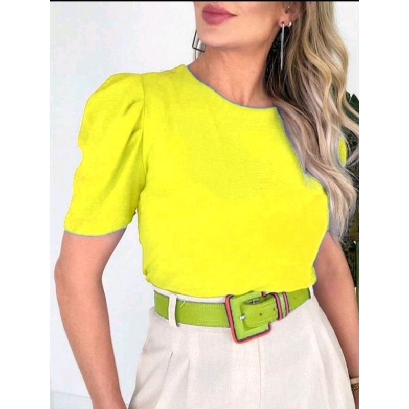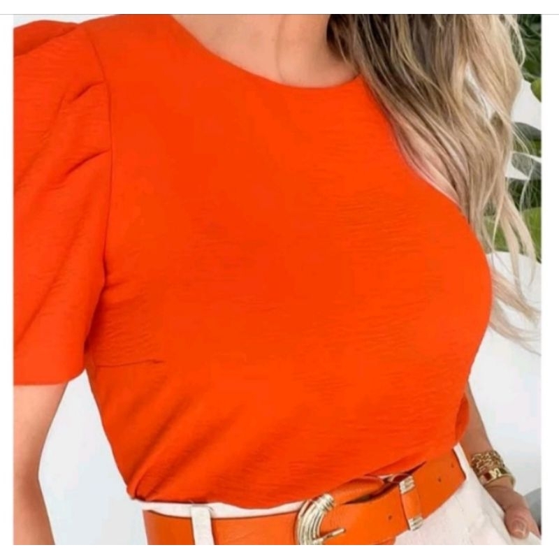 tecido duna bluza feminina manga bufante super elegante soltinha moda verão