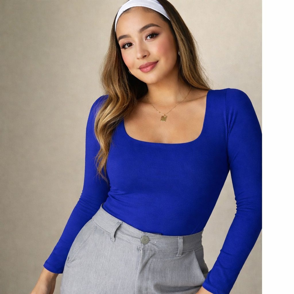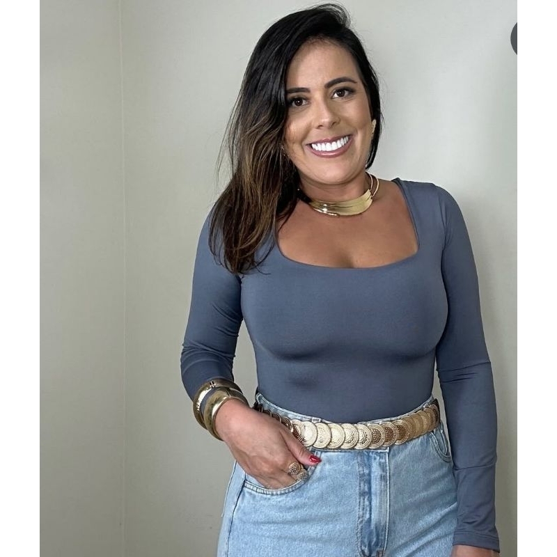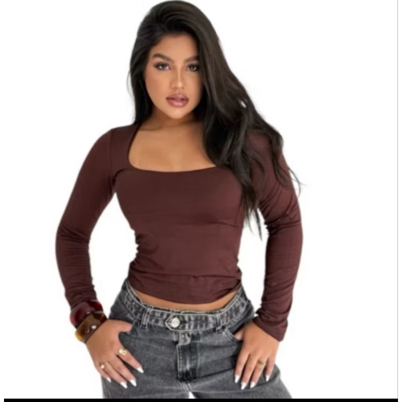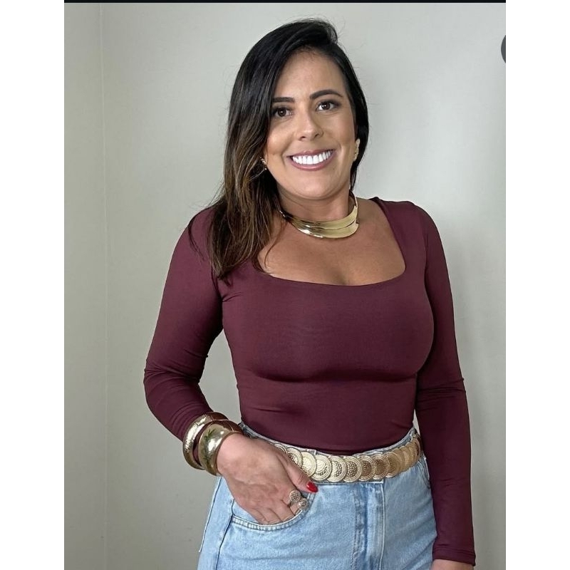 blusa feminina básica suplex decote Gola quadrado manga longa moda inverno