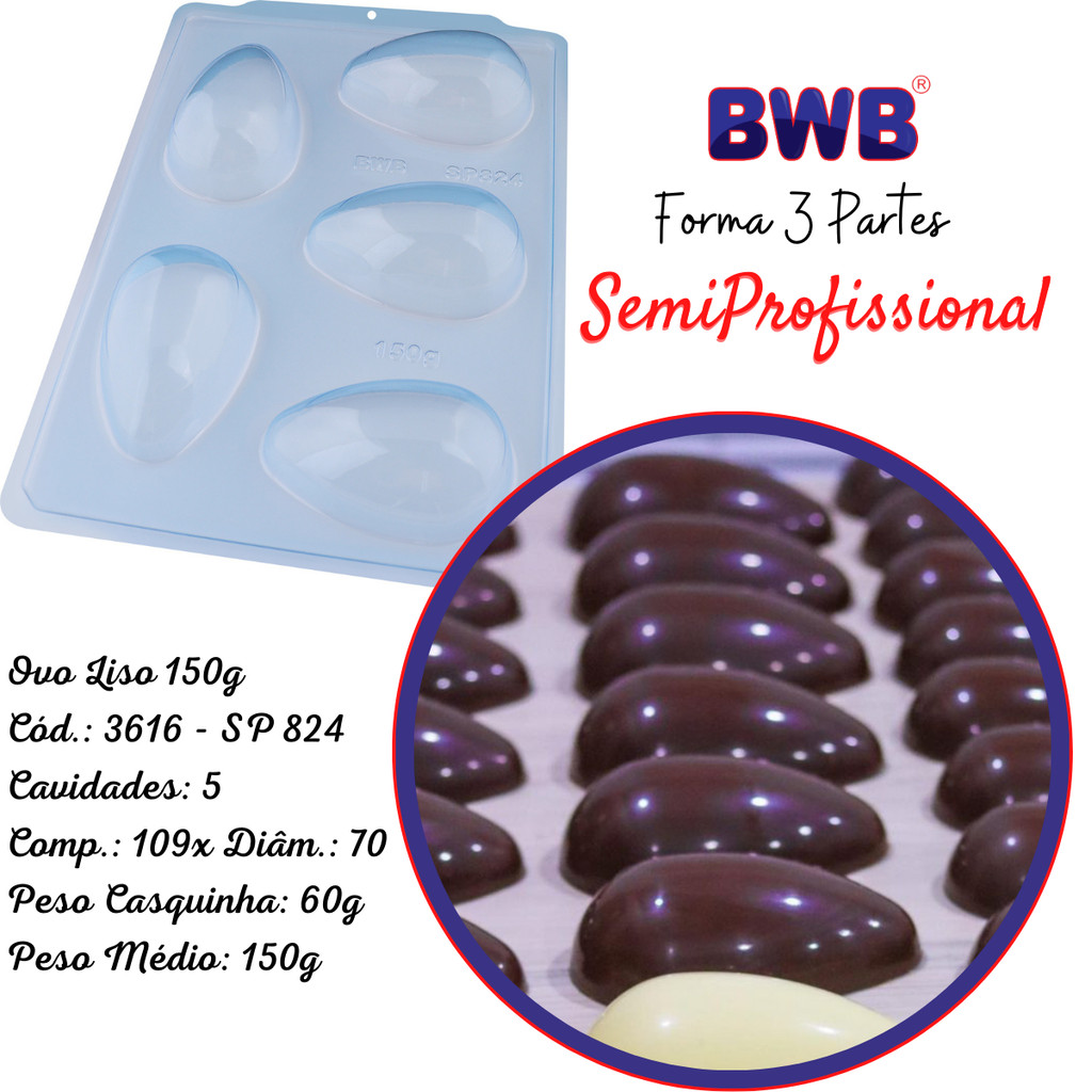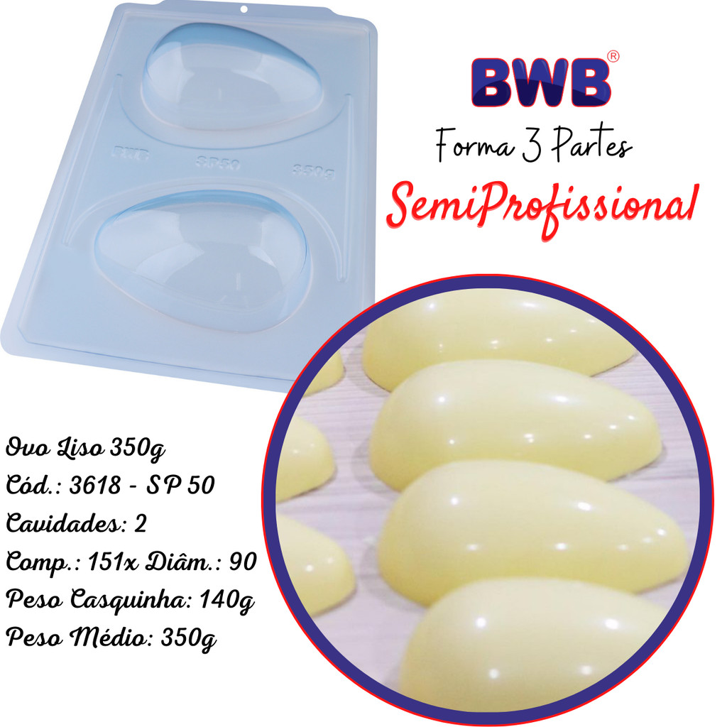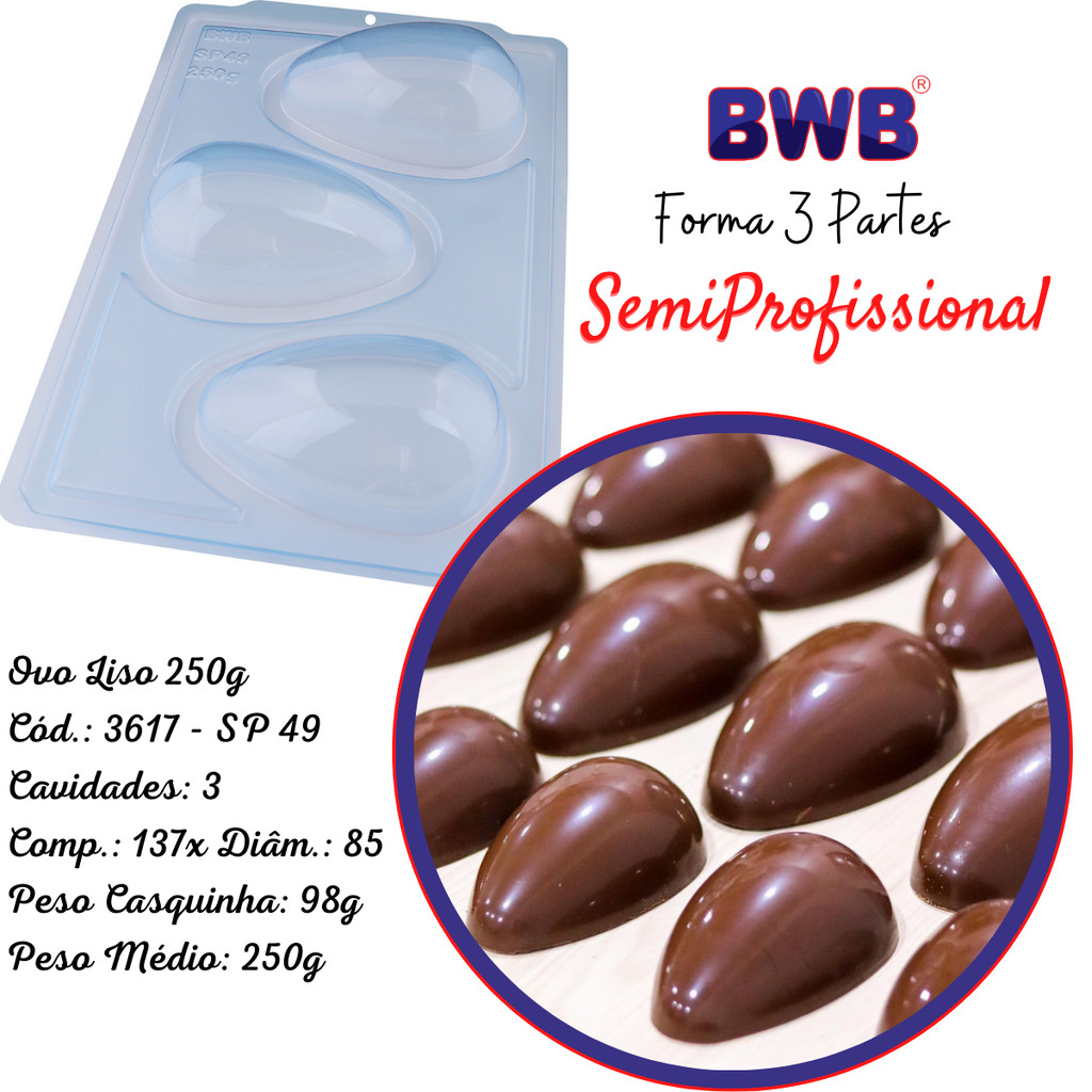 Forma Ovo Páscoa Semiprofissional 3 Partes Silicone Chocolate 50/100/150/250/350/500/750g suporte