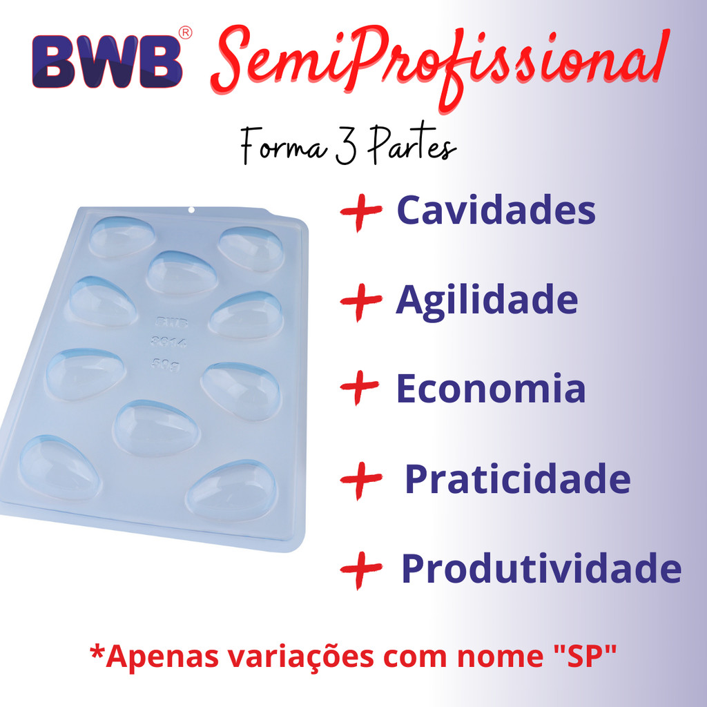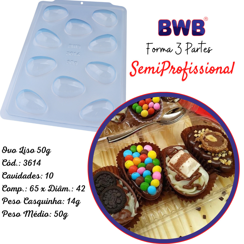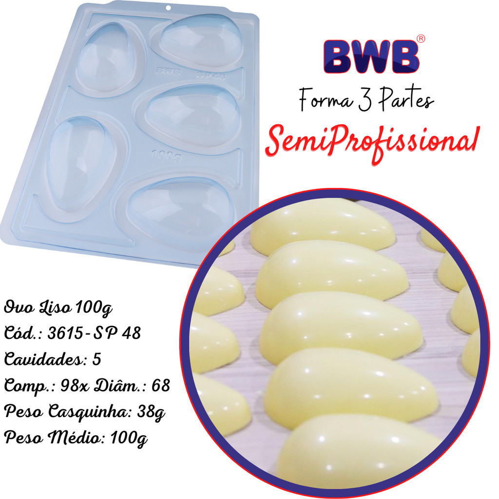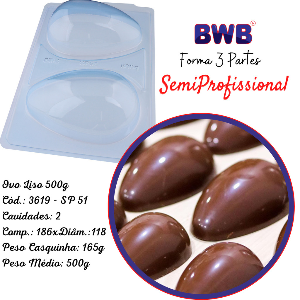 Forma Ovo Páscoa Semiprofissional 3 Partes Silicone Chocolate 50/100/150/250/350/500/750g suporte