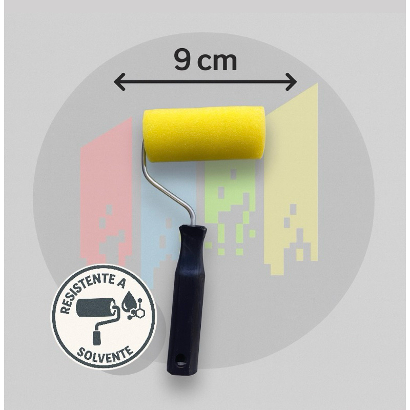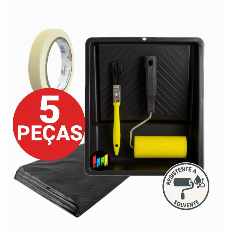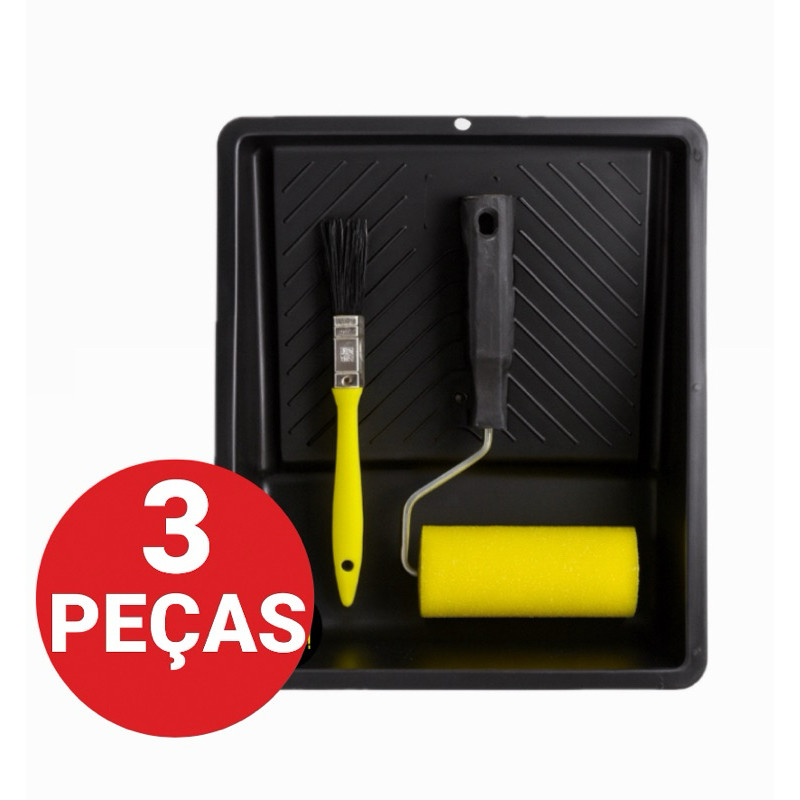 Kit Pintura Rolo Espuma 9cm C/ Suporte, Trincha 12mm e Bandeja Pequena - Desenroll