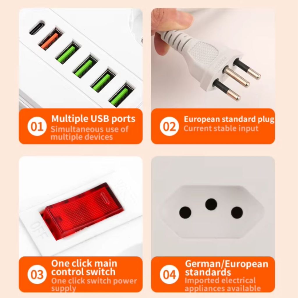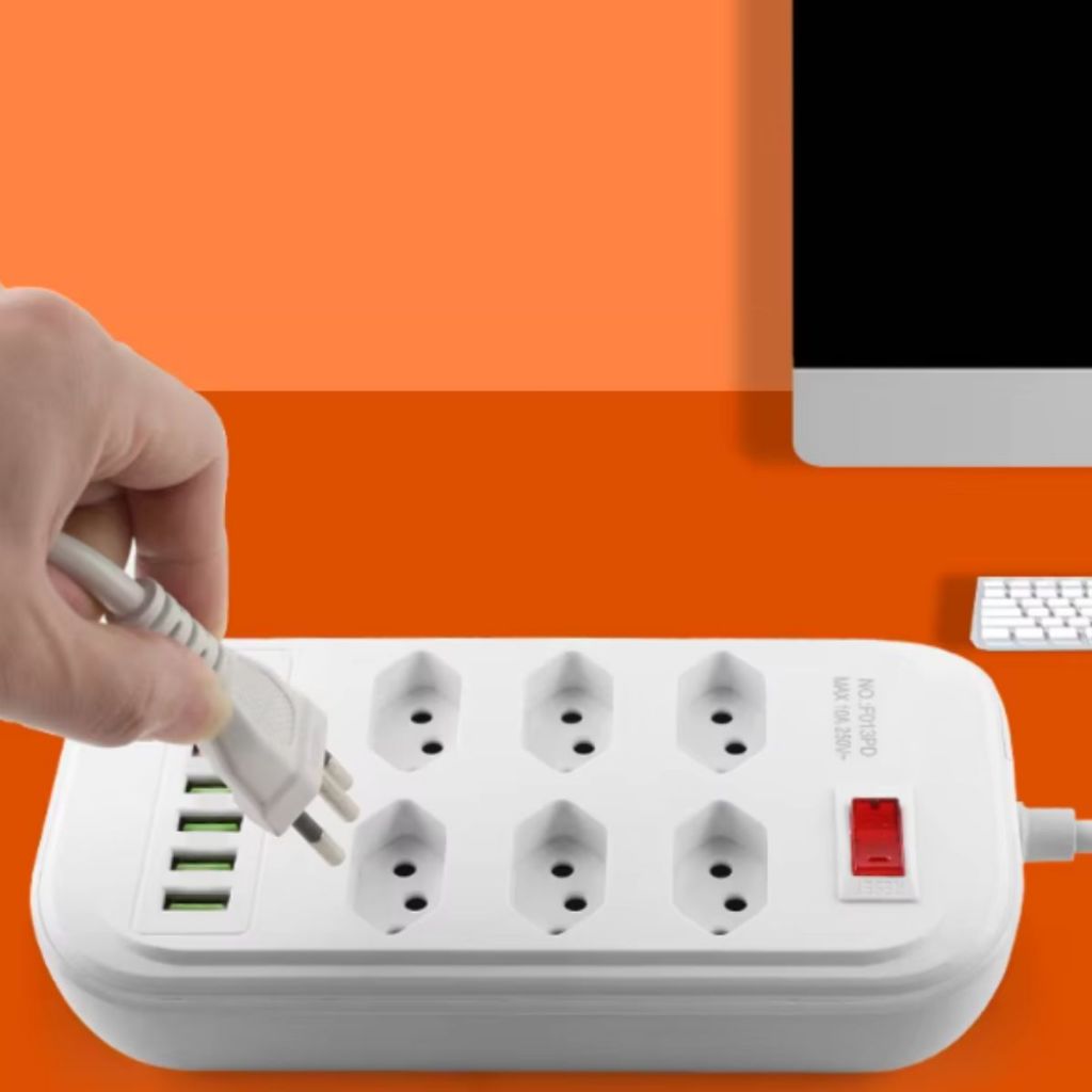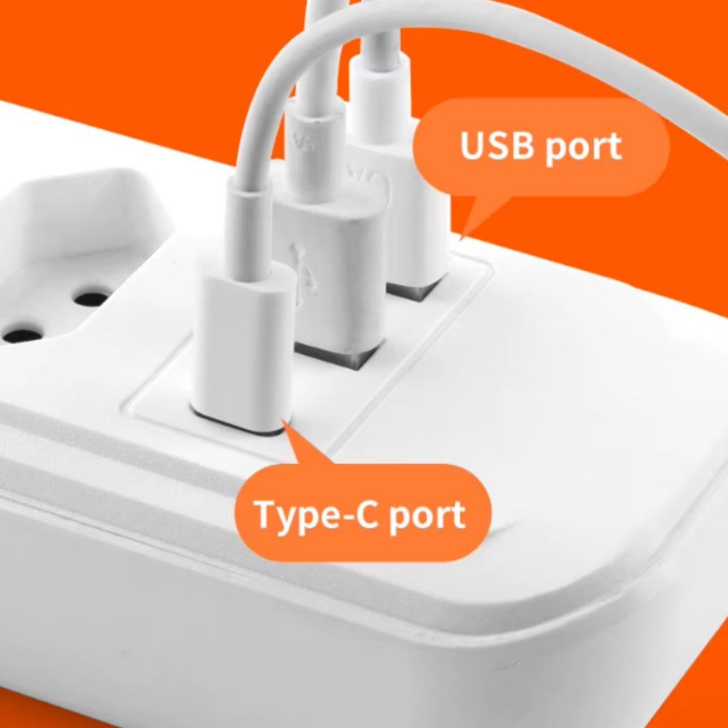 Extensão 3/4/5/6/8/10 Tomadas com Porta USB Tipo-C Régua Extensão Filtro de Linha 2 Metros Bivolt