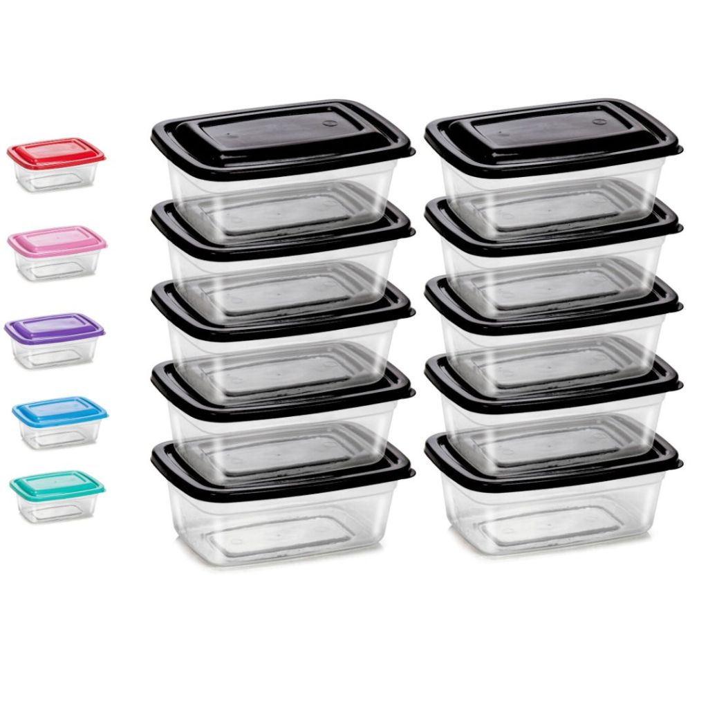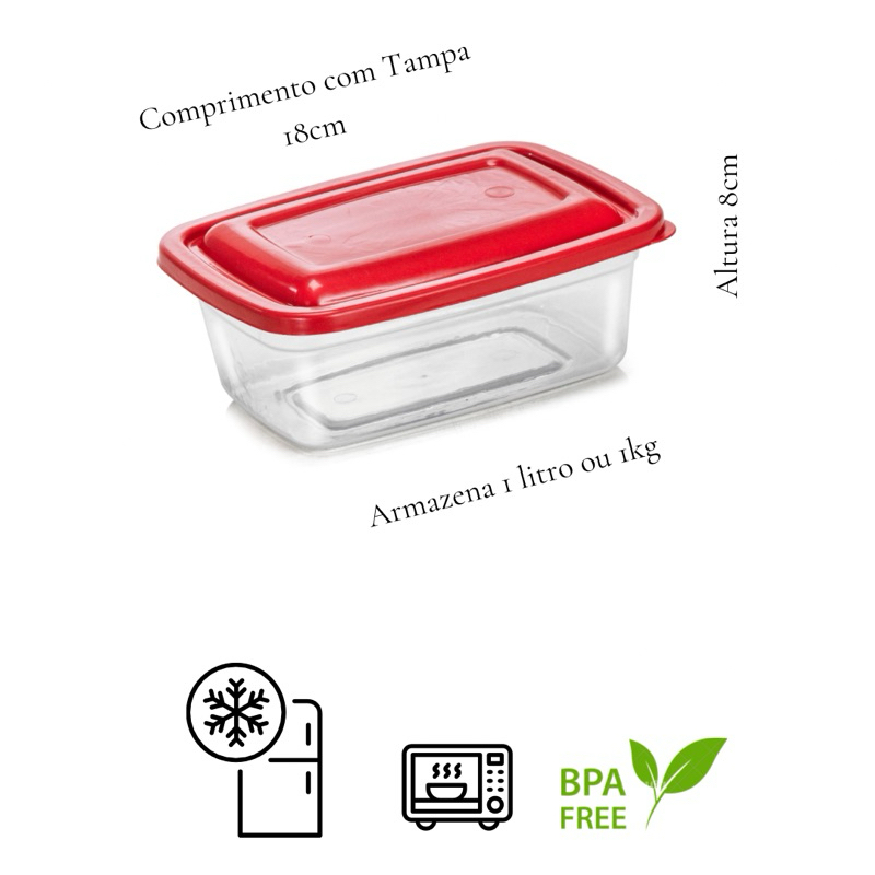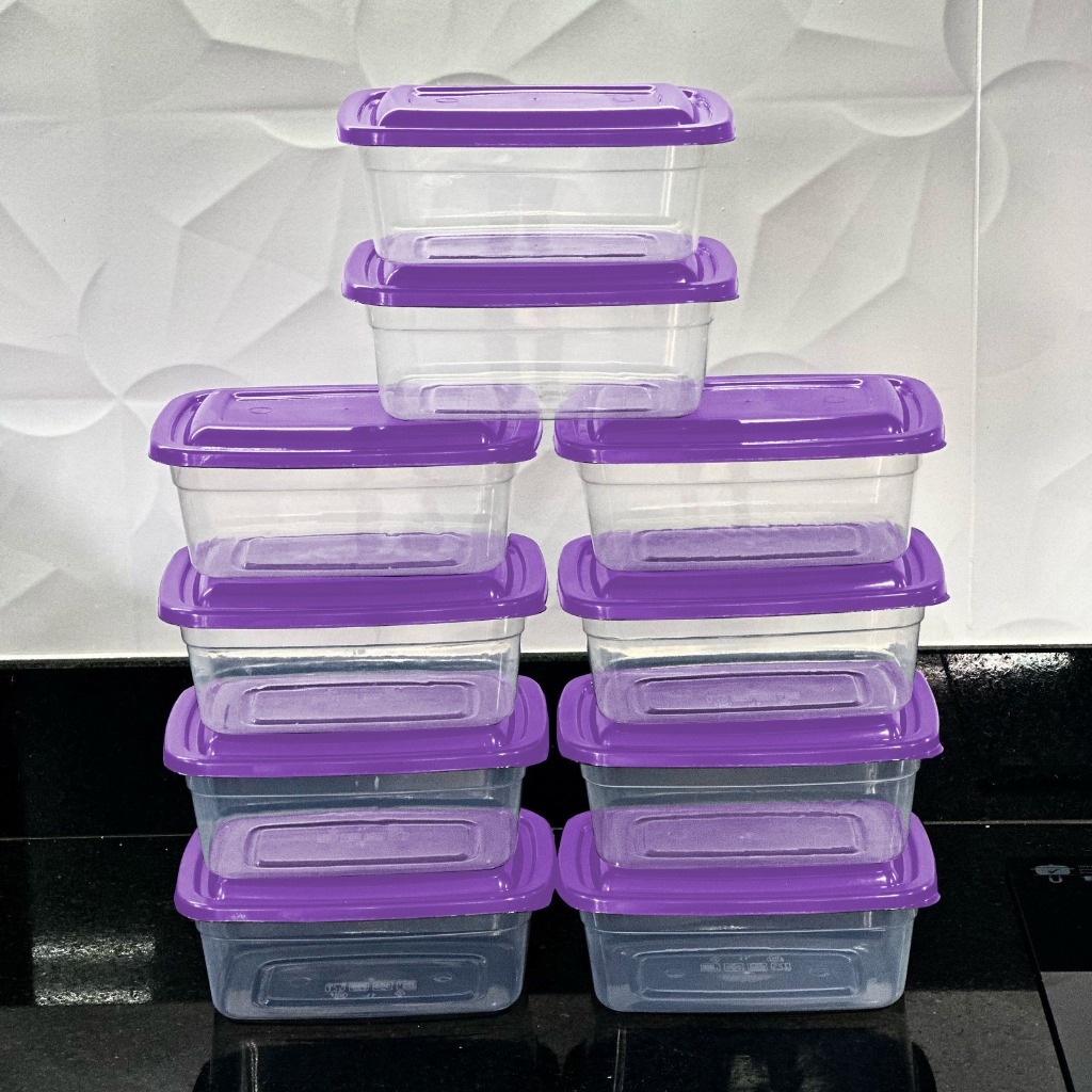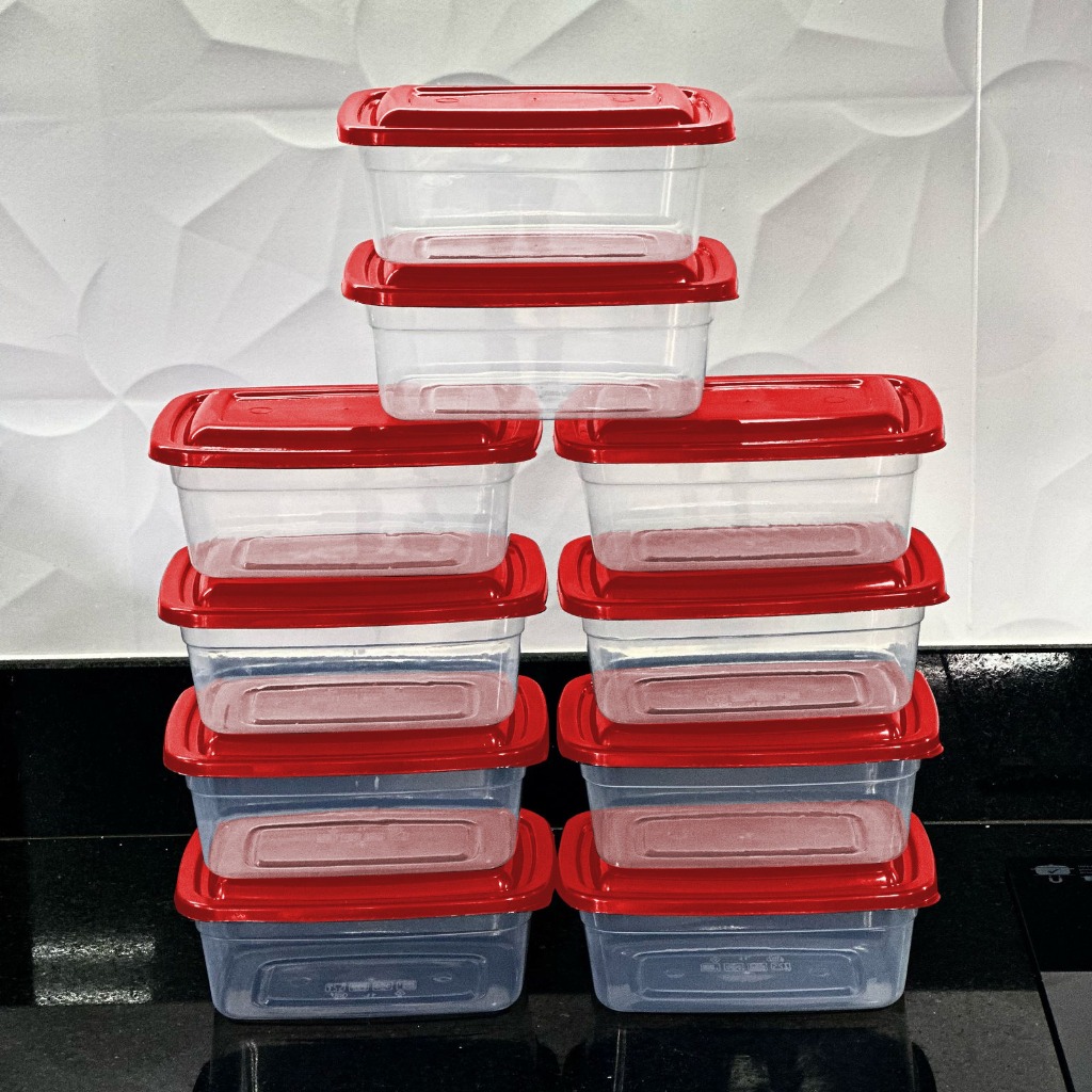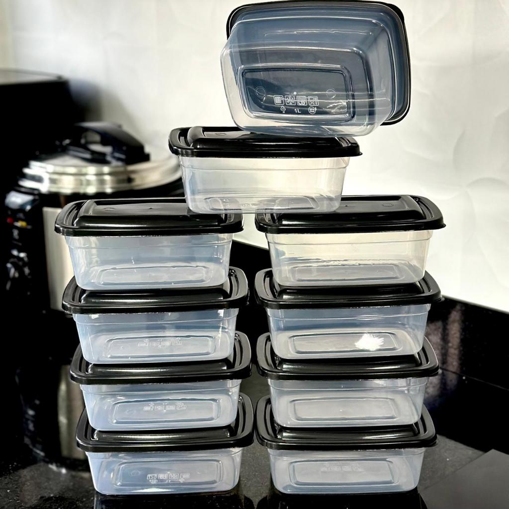 Kit De 10 Potes 1 Litro Transparente - Tampa Colorida Marmita BPA FREE, Vasilhas, Freezer Microondas