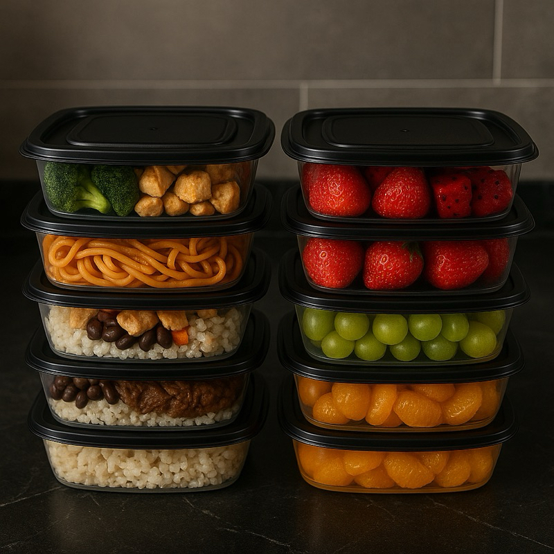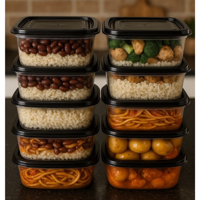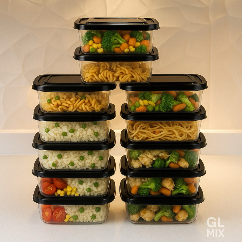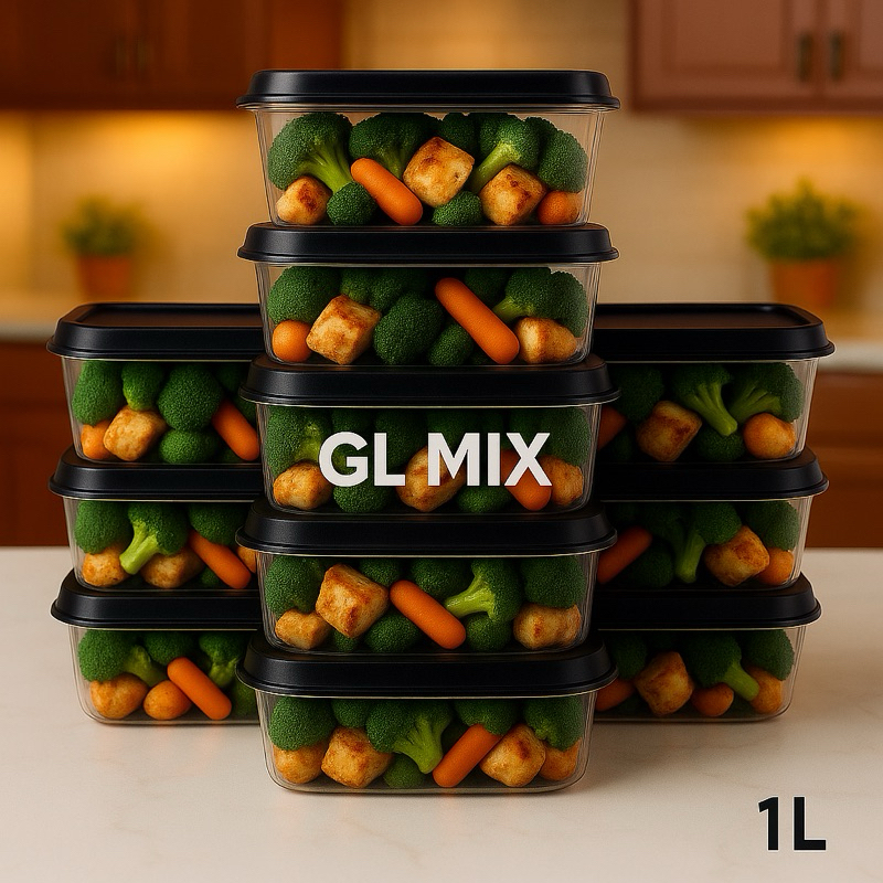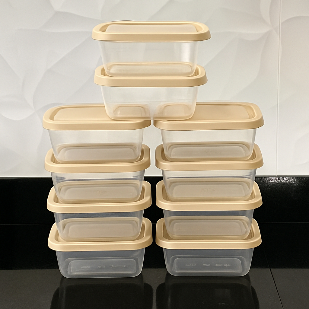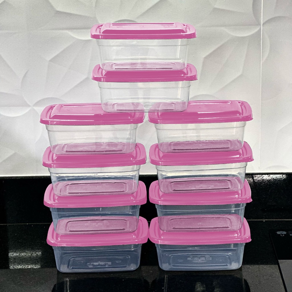 Kit De 10 Potes 1 Litro Transparente - Tampa Colorida Marmita BPA FREE, Vasilhas, Freezer Microondas