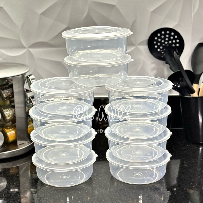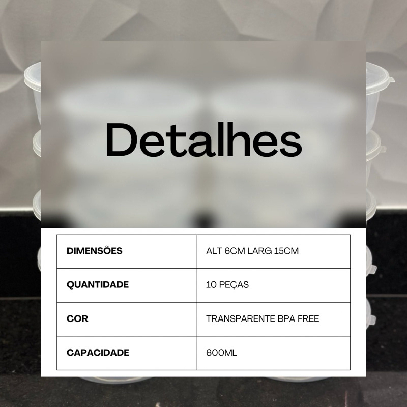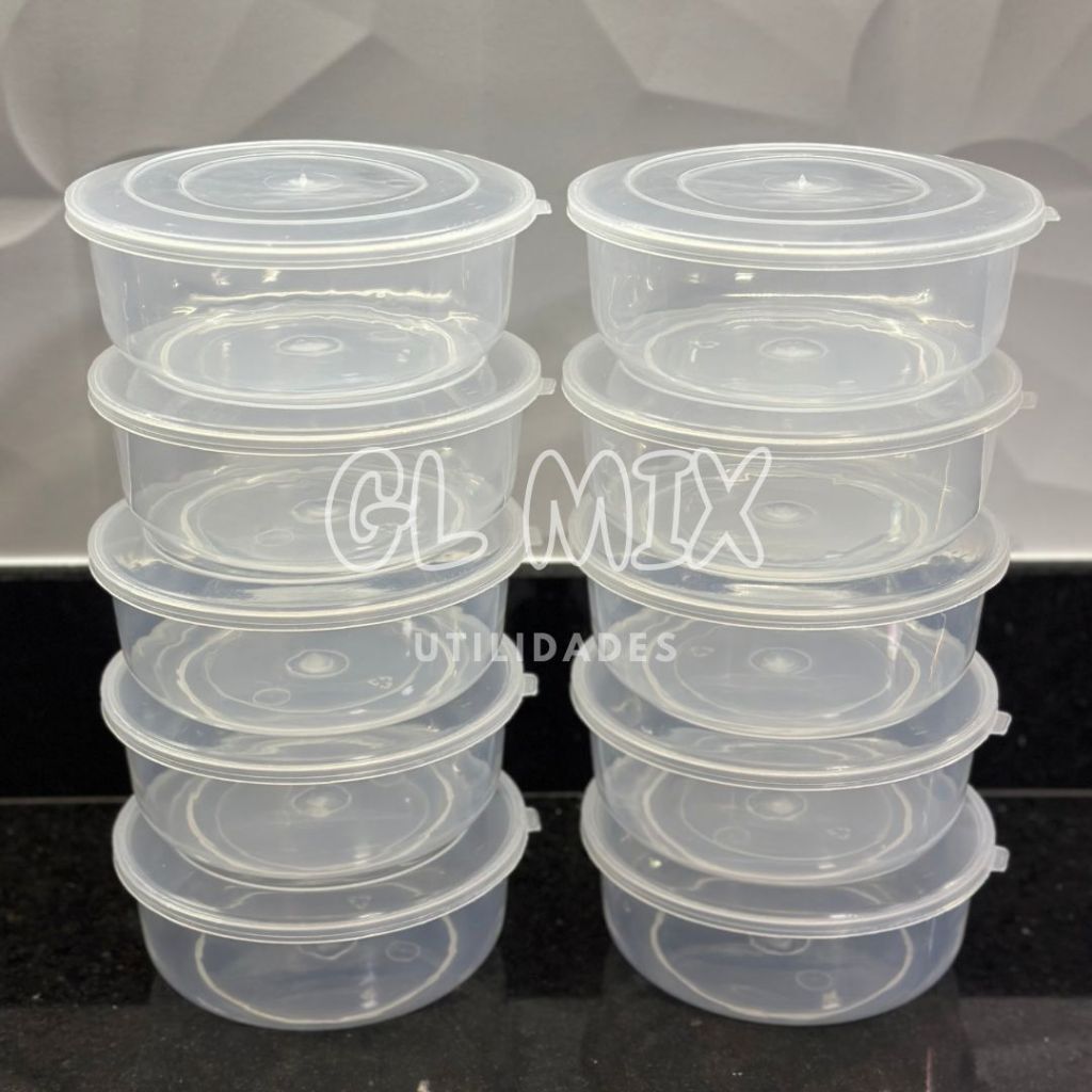 Kit 10 Potes 600ml transparente > Marmitas - Microondas, freezer lava louças! Vasilha