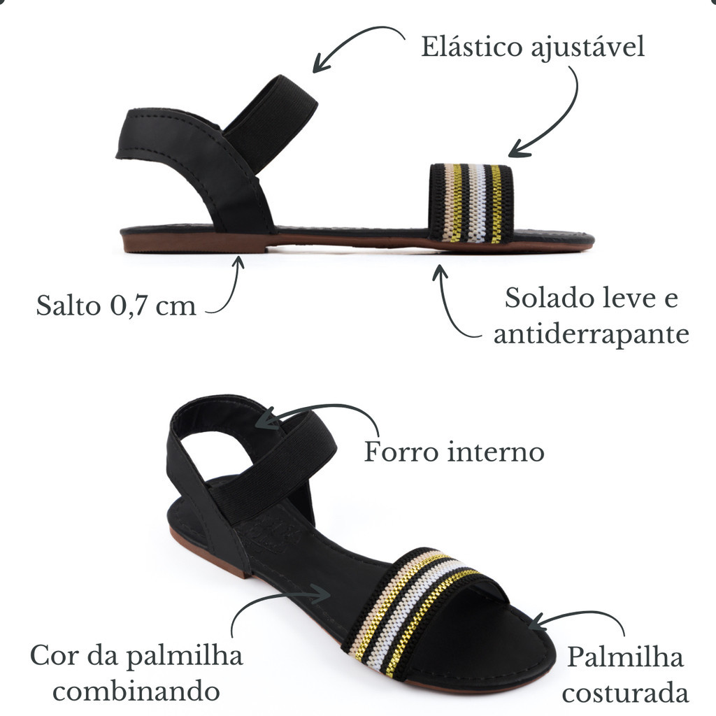 Sandália Feminina Rasteirinha Rasteira Feminina Confortável Calcanhar Elástico Calce Fácil
