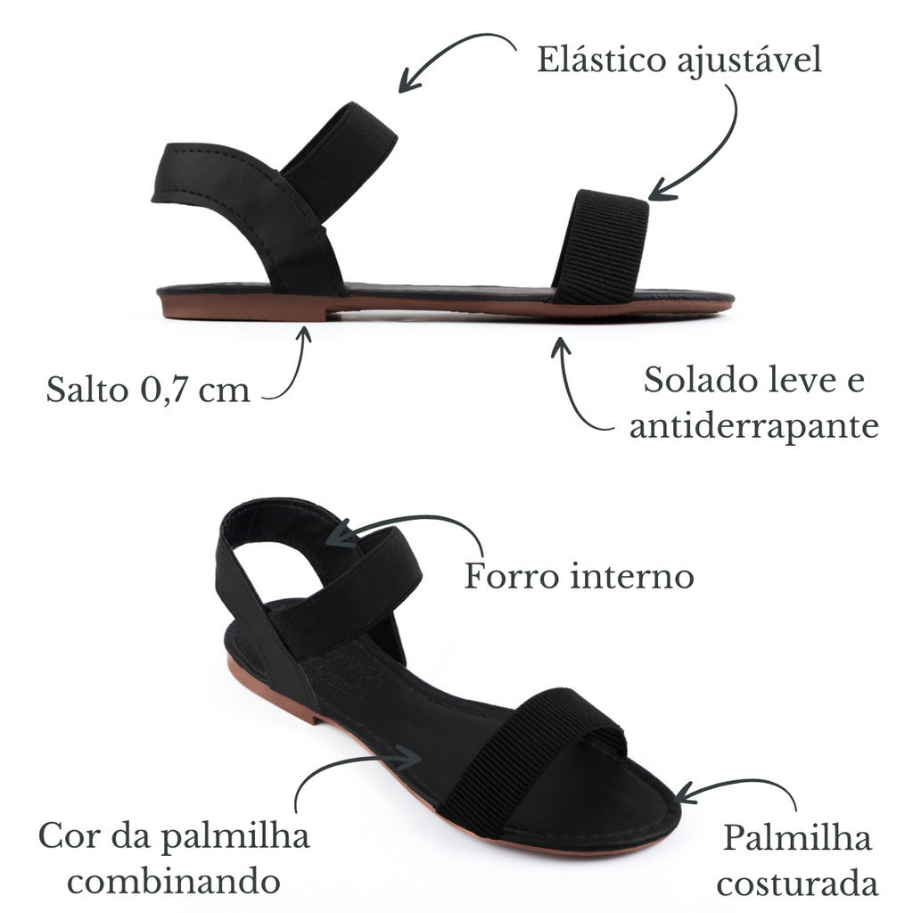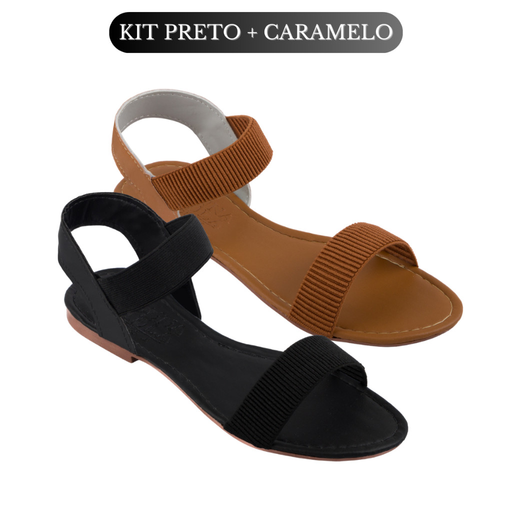 Sandália Feminina Rasteirinha Rasteira Calce Fácil Feminina Kit 2 Pares Confortável Elástico