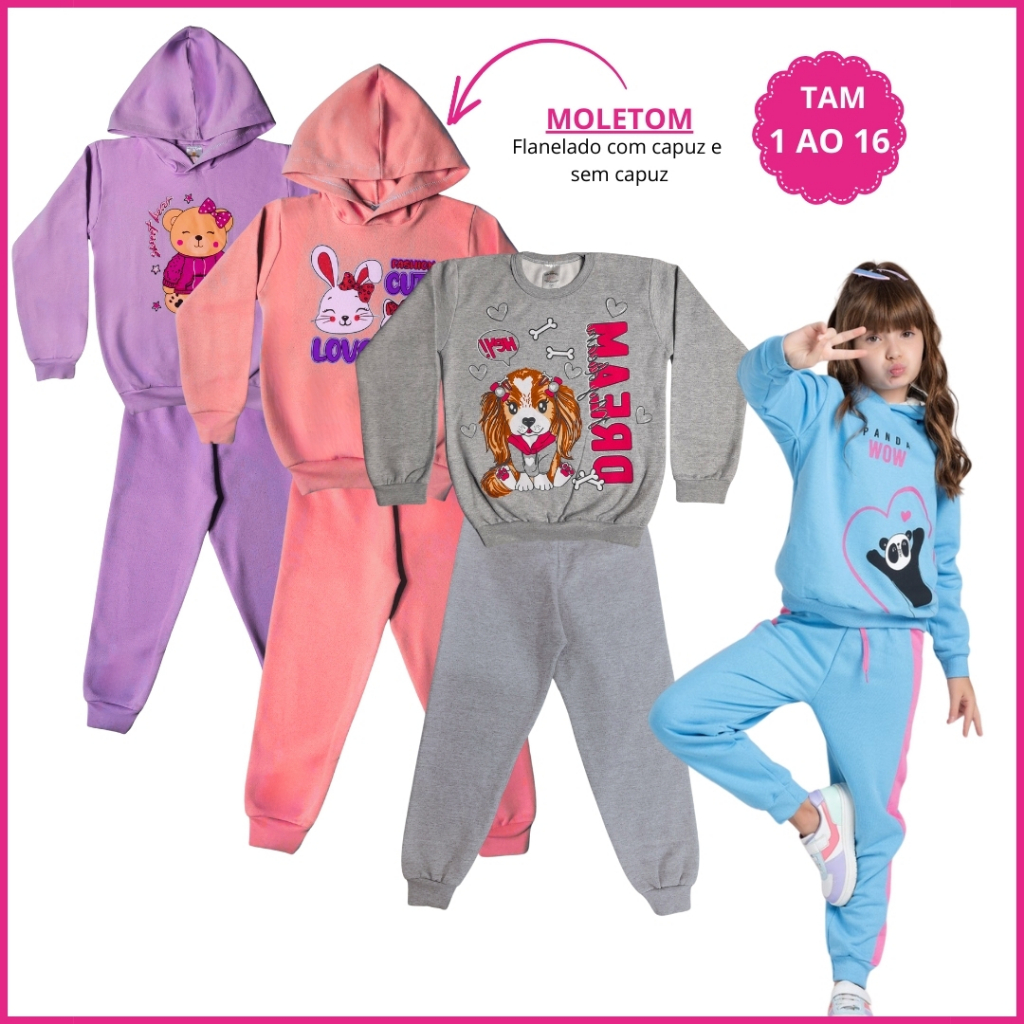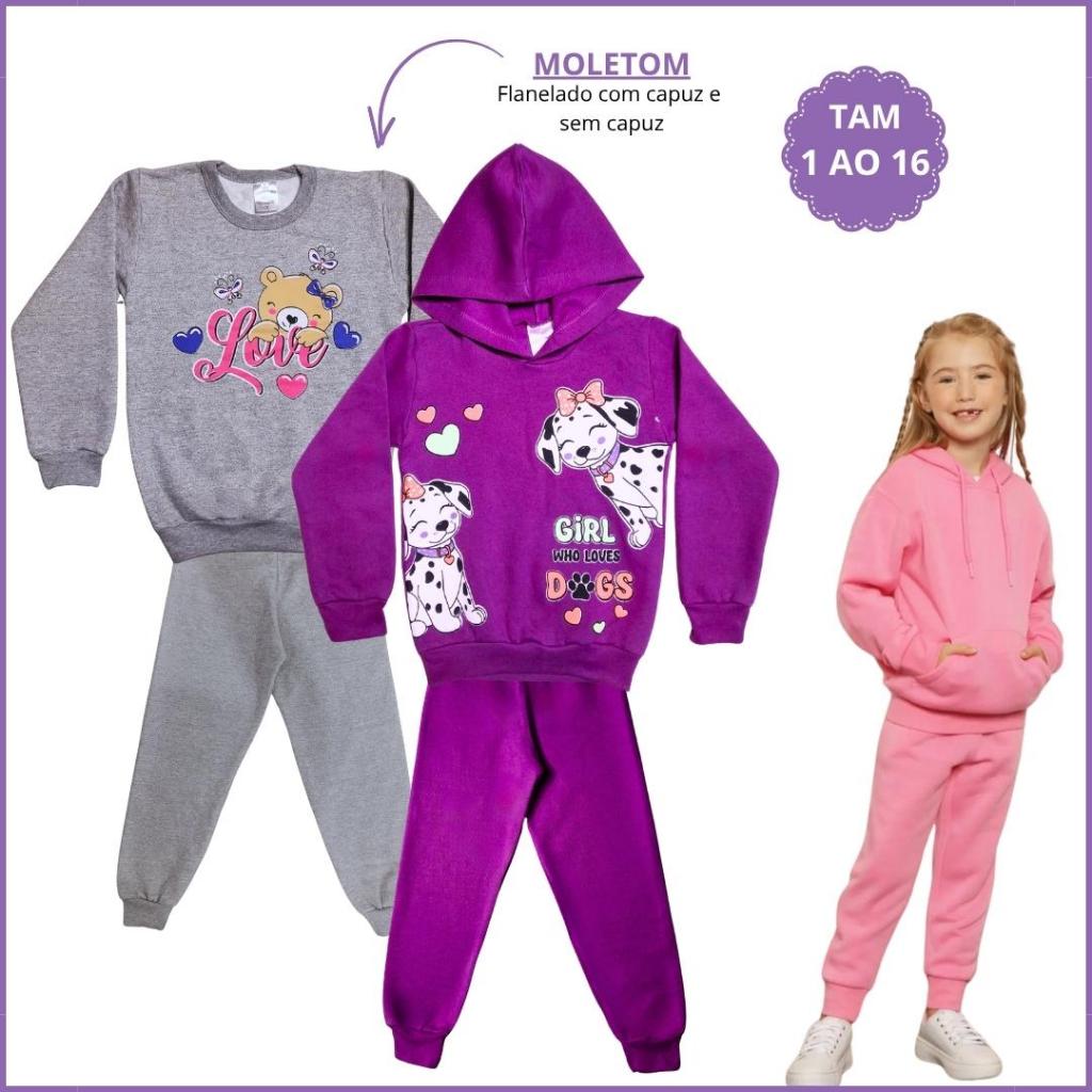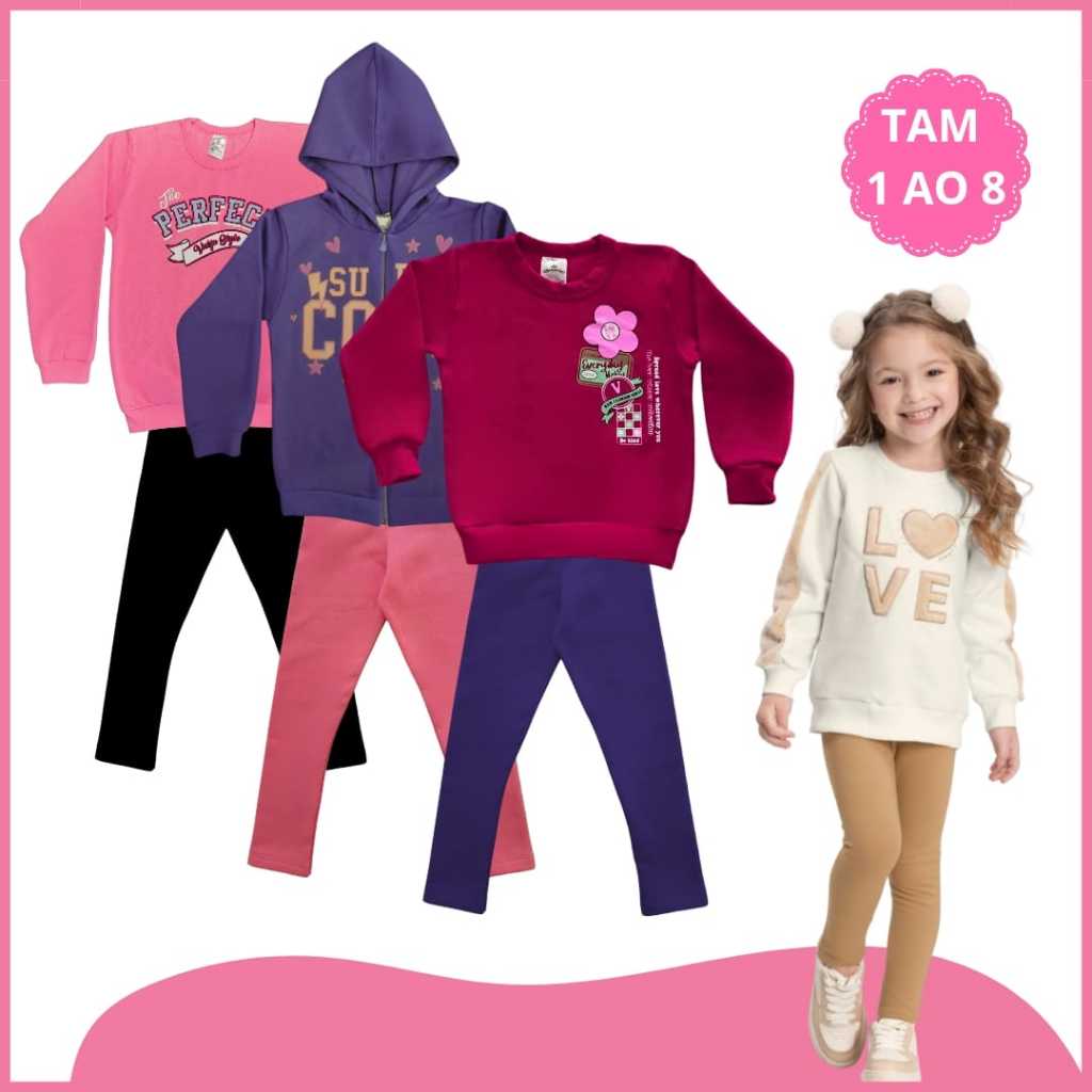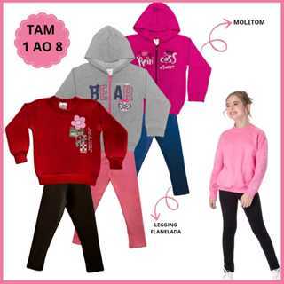 Kit 4 Peças Conjunto Moletom Infantil Menina Inver 2 Blusa Moletom 2 Calça Legging Flanelada 1 ao 16