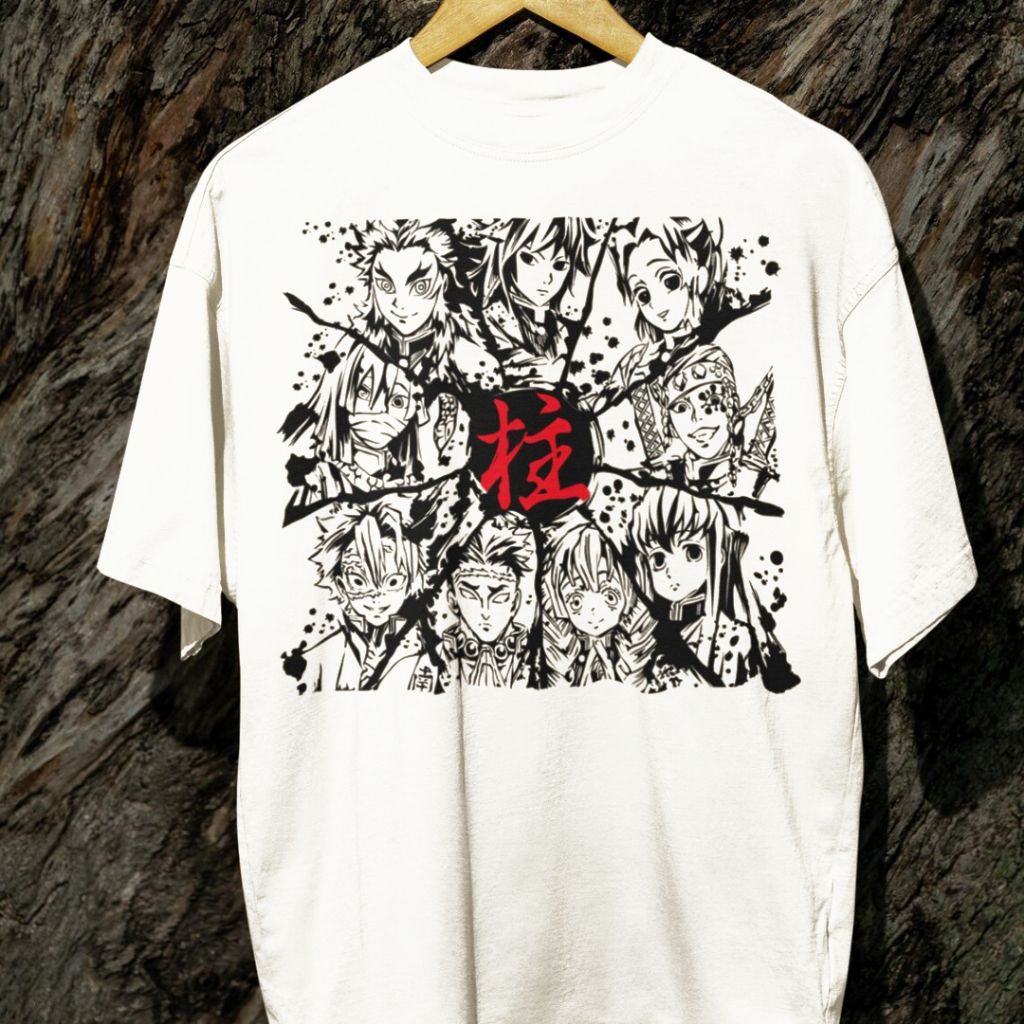 Camiseta Oversize Algodão Anime Pilares Demon Slayer Masculina Feminina Streetwear