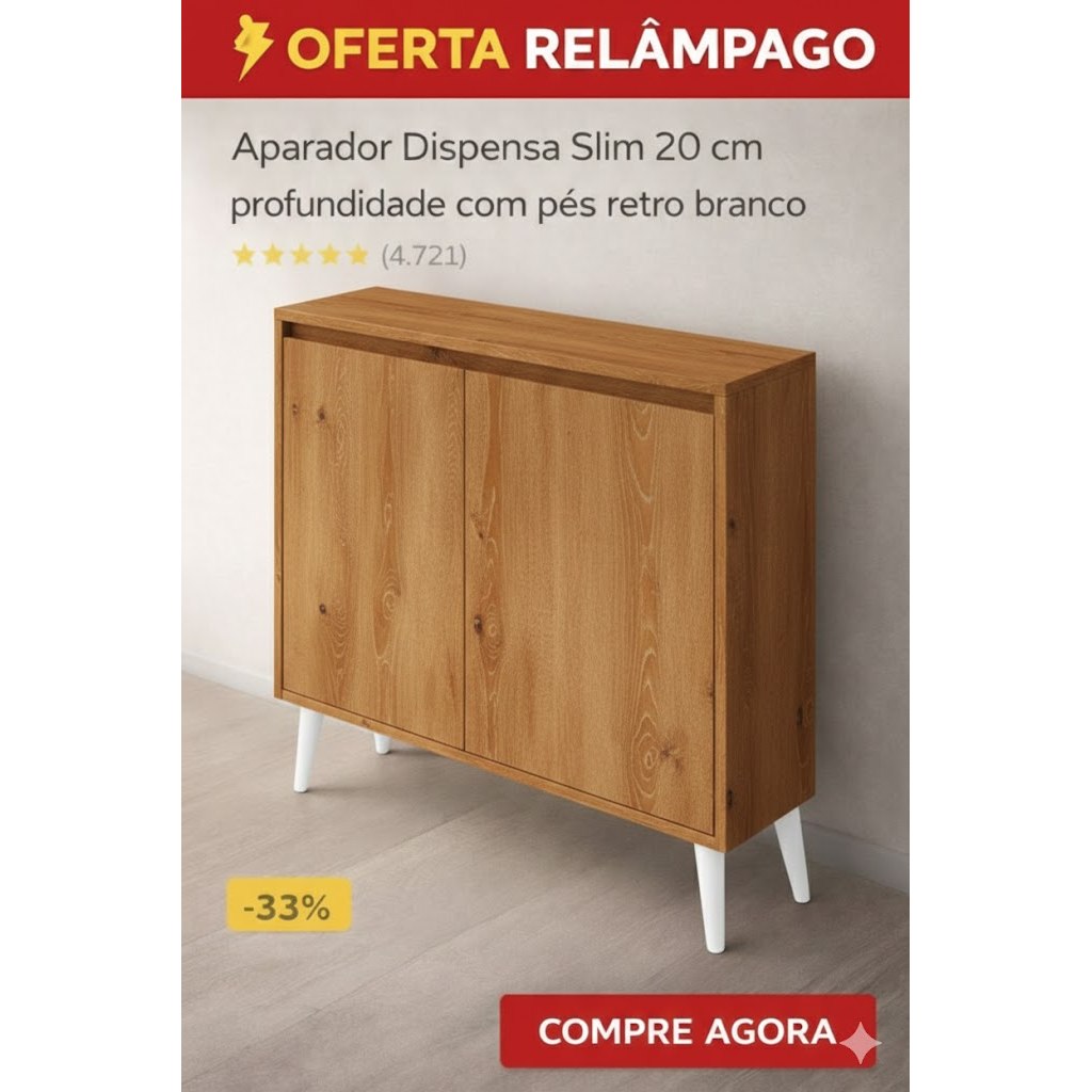 Dispensa Nicho Aparador com 2 Portas 70x60x20 PÉS RETRO