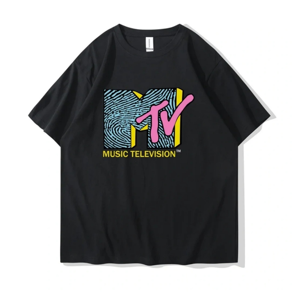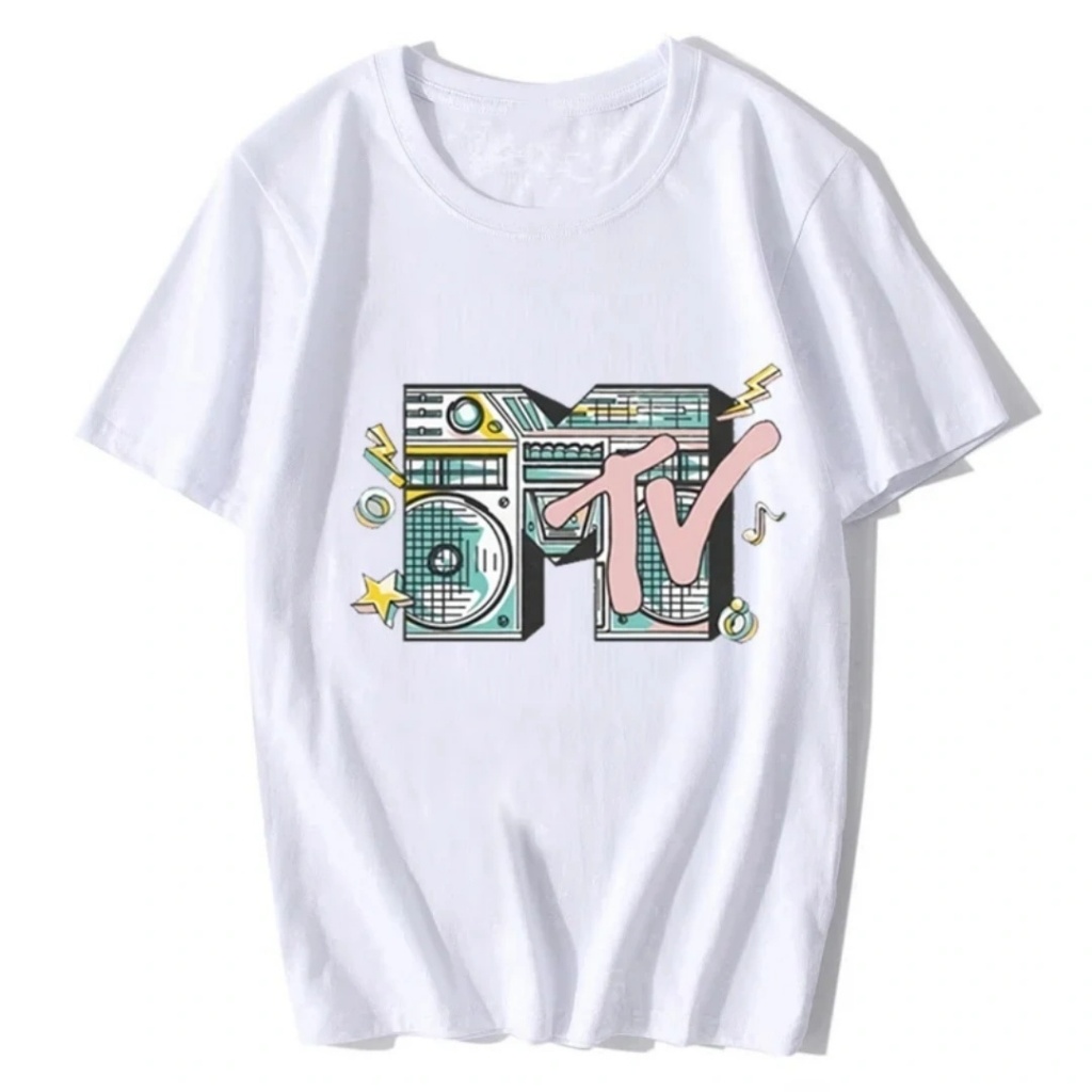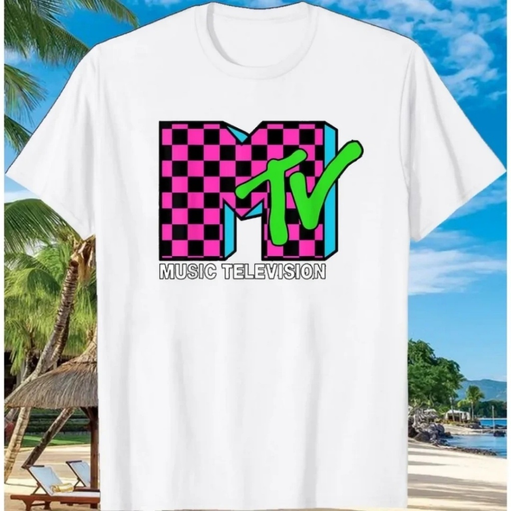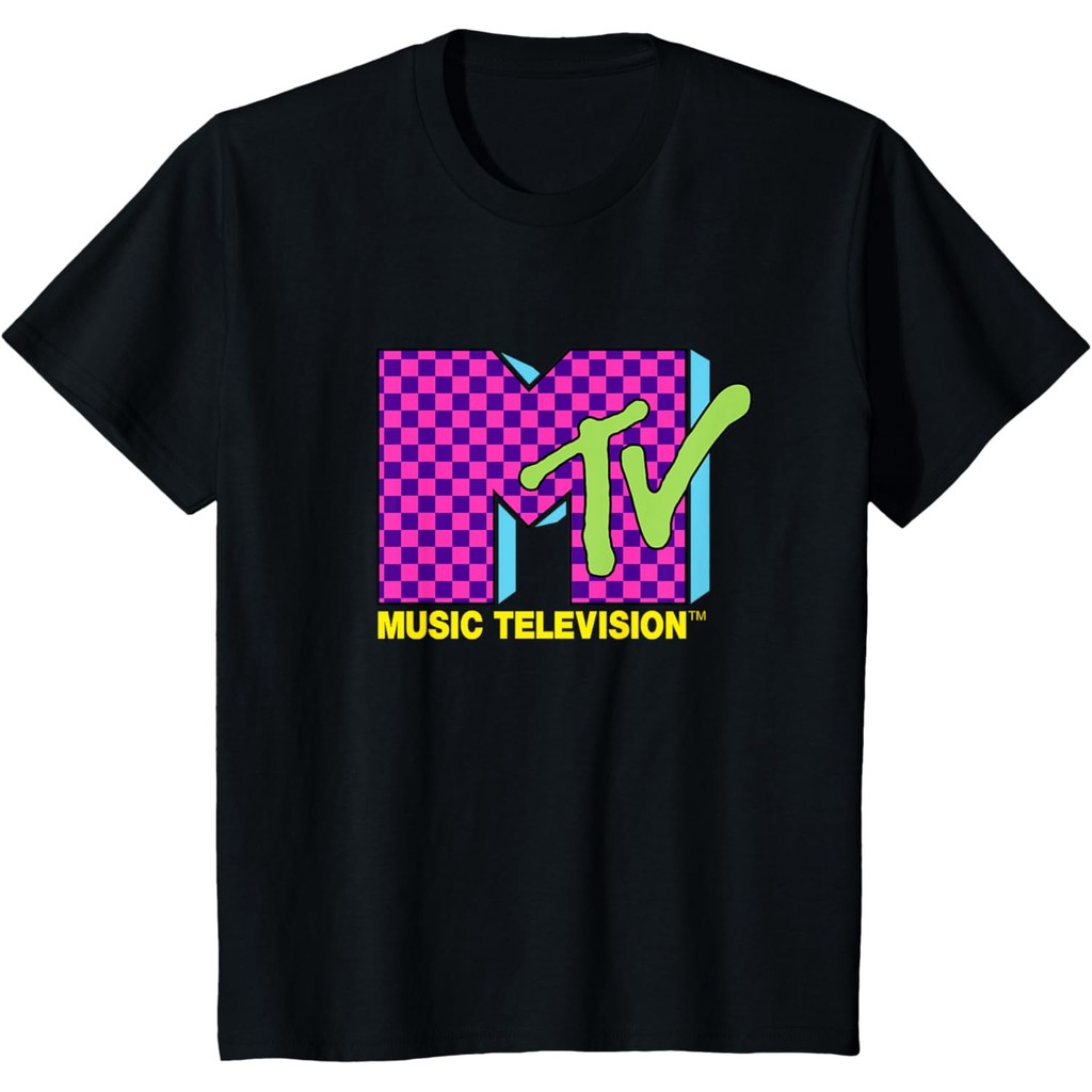 Camiseta com logotipo xadrez rosa neon retrô dos anos 80 da MTV Music Television