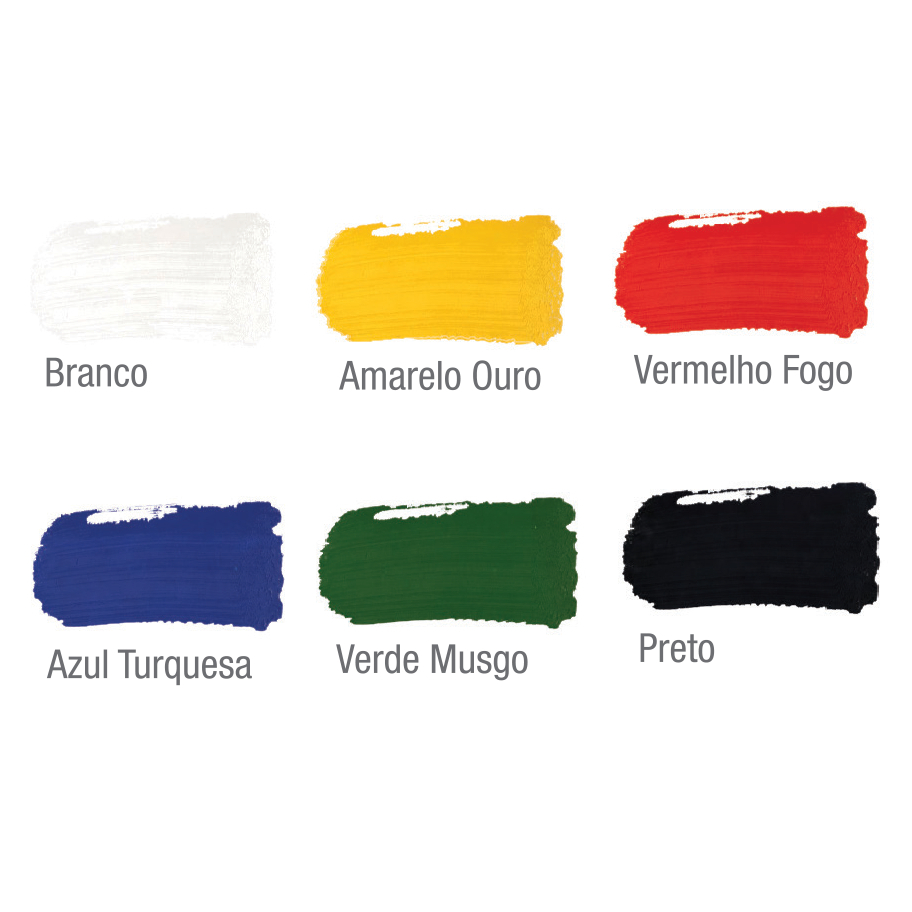 Tinta PVA Acrilex 6 Cores 37ml Artesanato Cerâmica Pintura