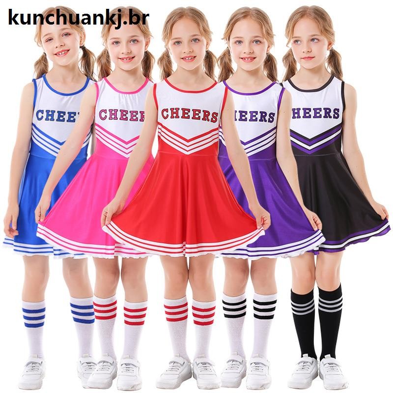 Jogo De Dança De Futebol De Líderes De Torcida Vermelho Vestido De Bebê Cosplay Custume Set Girls Gift XS-XL