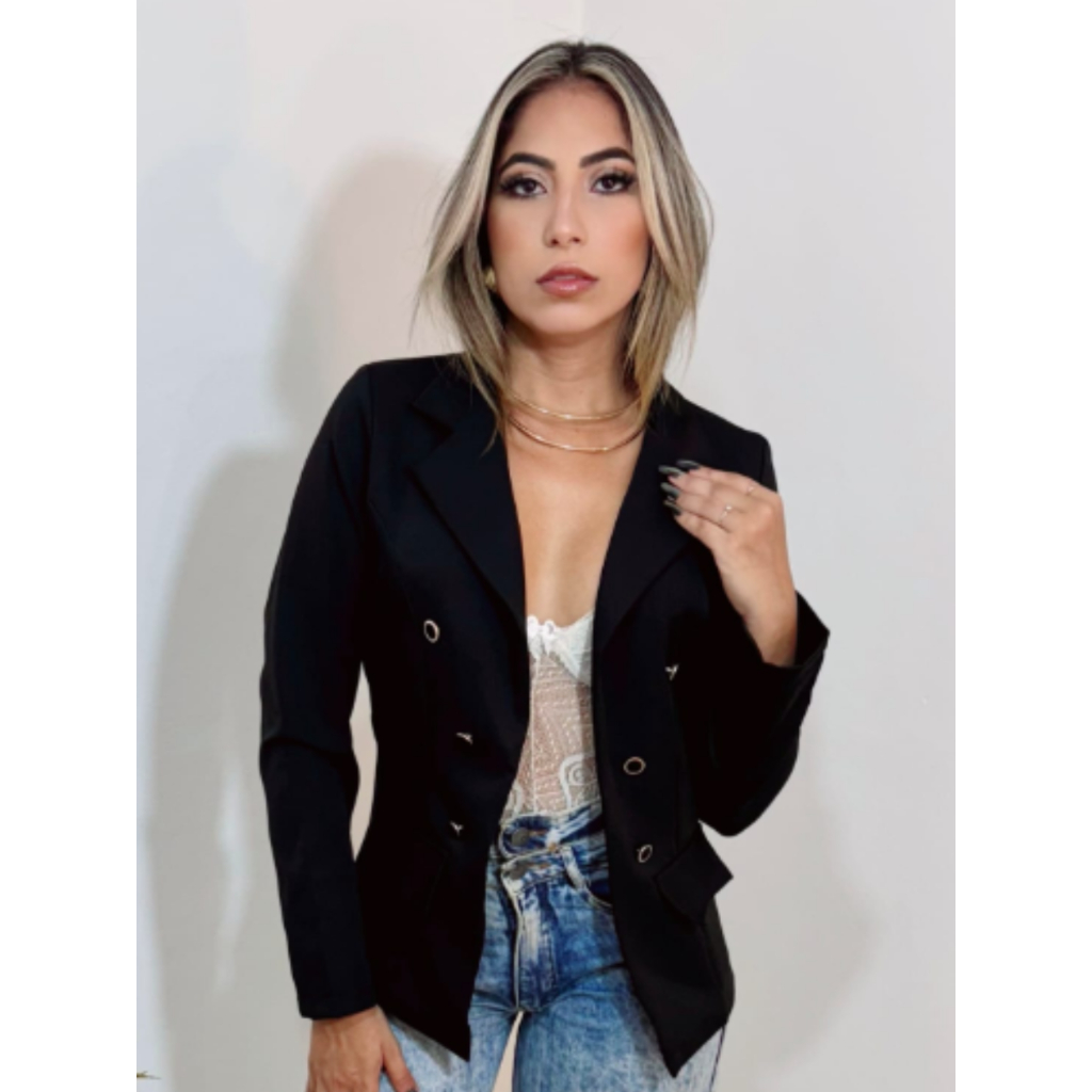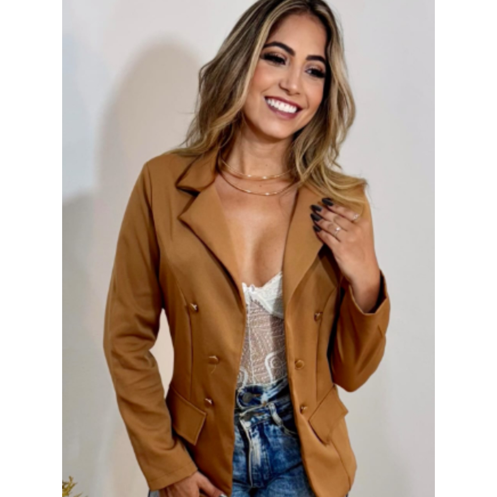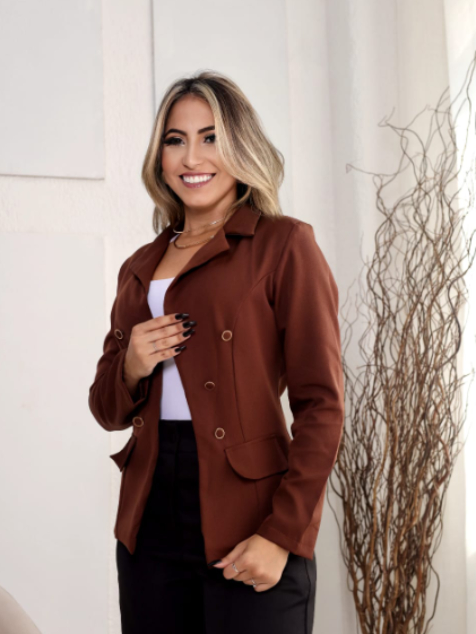 Blazer Feminino de Alfaiataria Forrado com Detalhe em Botão e Bolsos Funcionais