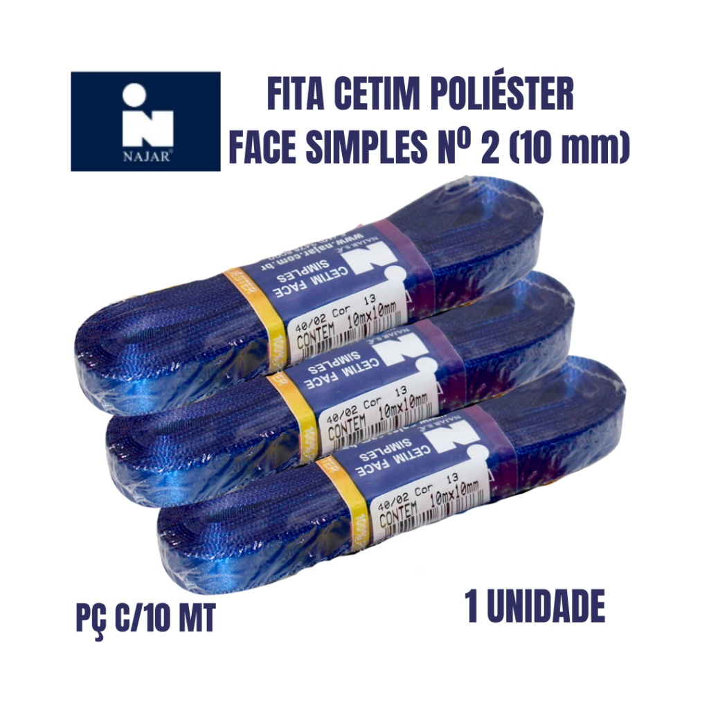 Fita cetim N° 2 10mm Najar face simples 100% poliéster c/10 Metros UNIDADE