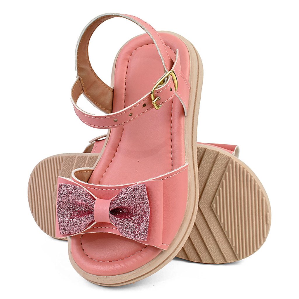 Sandália Infantil Menina Feminina Primavera Laço Brilho Espelhado Gliter Tratorada Luxo