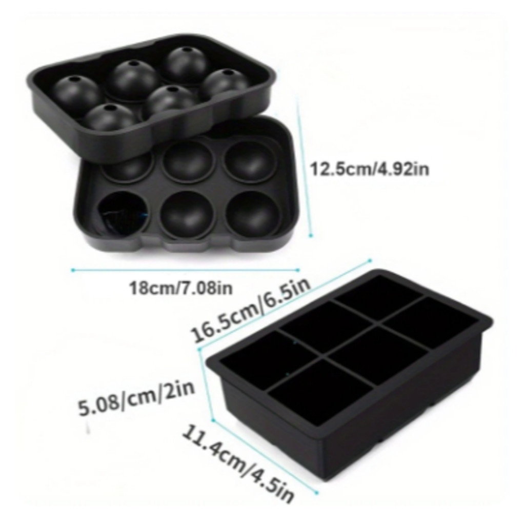 Forma De Gelo Silicone 6 cubo ou 6 bola Grande Drinks Preto