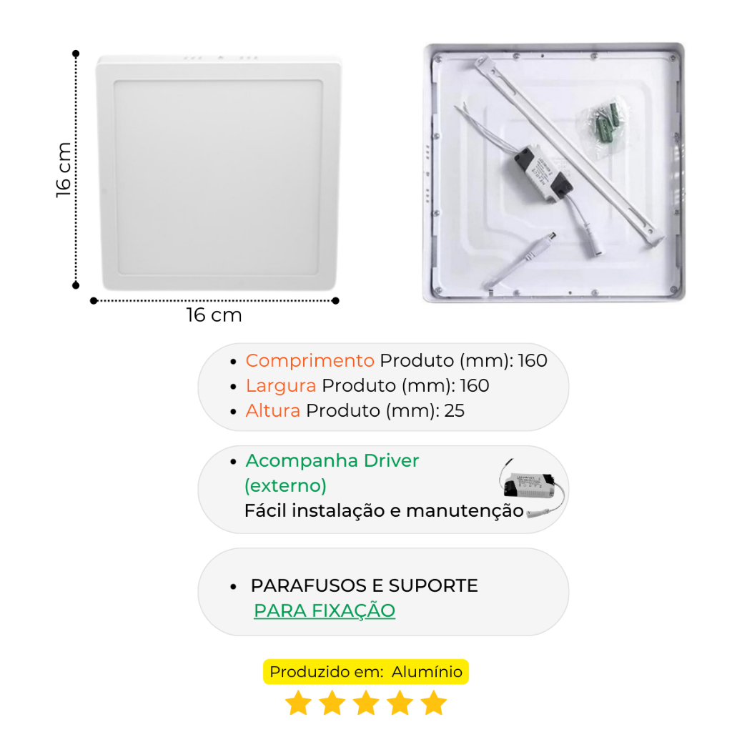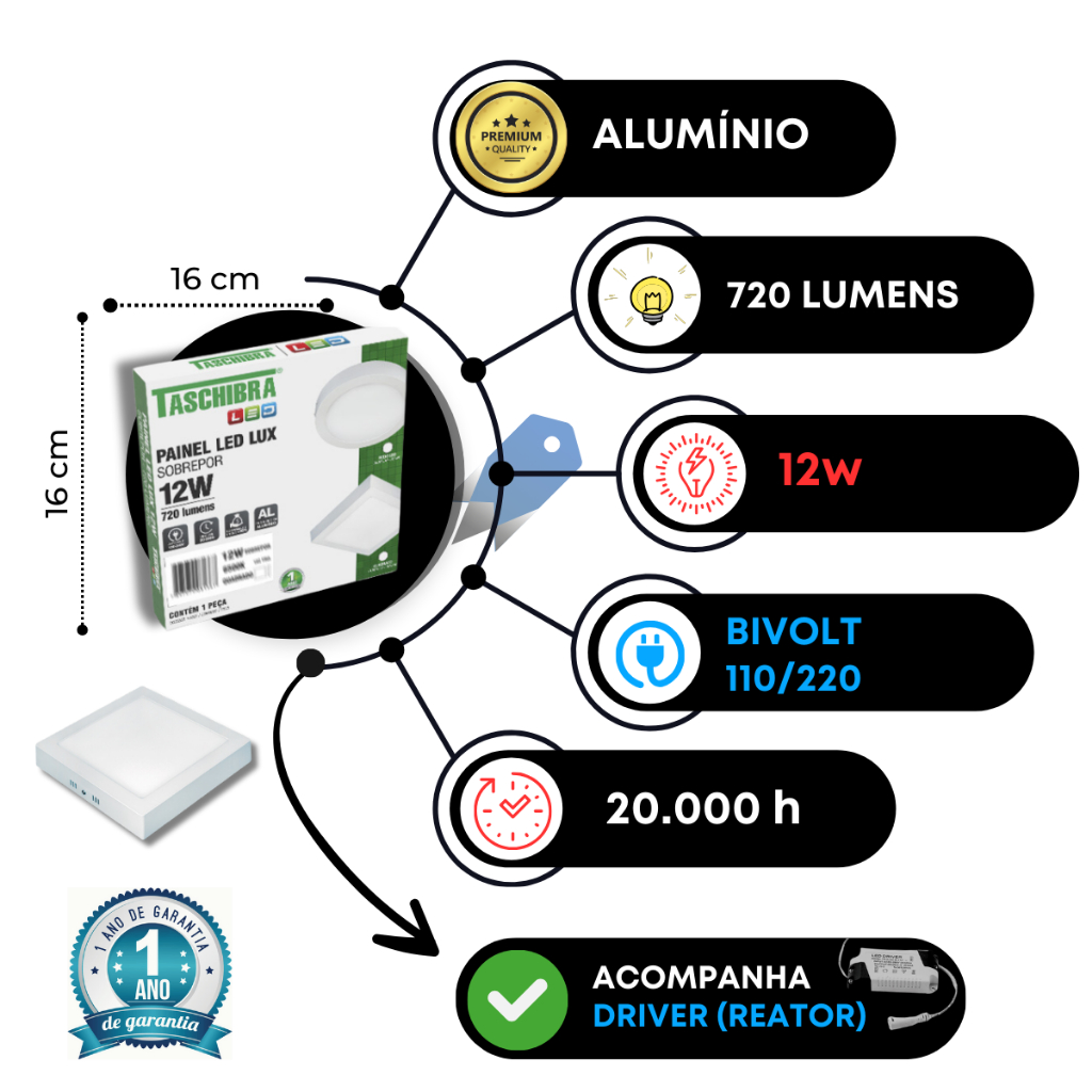 Kit 4 Painel Plafon Led 12w Quadrado Sobrepor Lux Taschibra