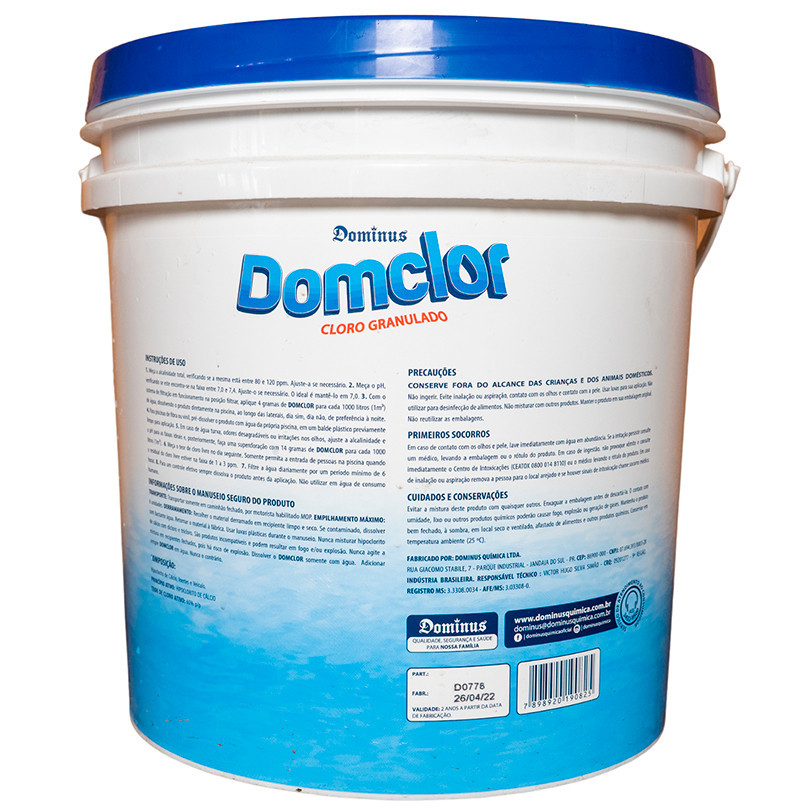 Cloro Granulado Domclor Balde 10KG 65% TEOR ATIVO