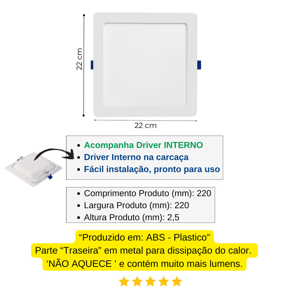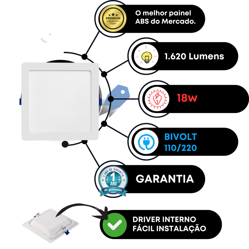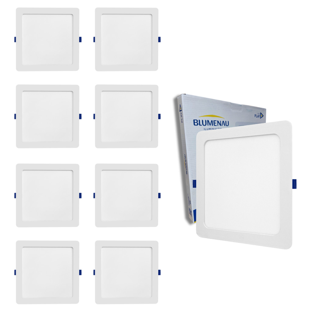 Kit 8 Painel Plafon Led Quadrado Embutir 18w Play 6500k 4000k 3000k Blumenau Iluminação
