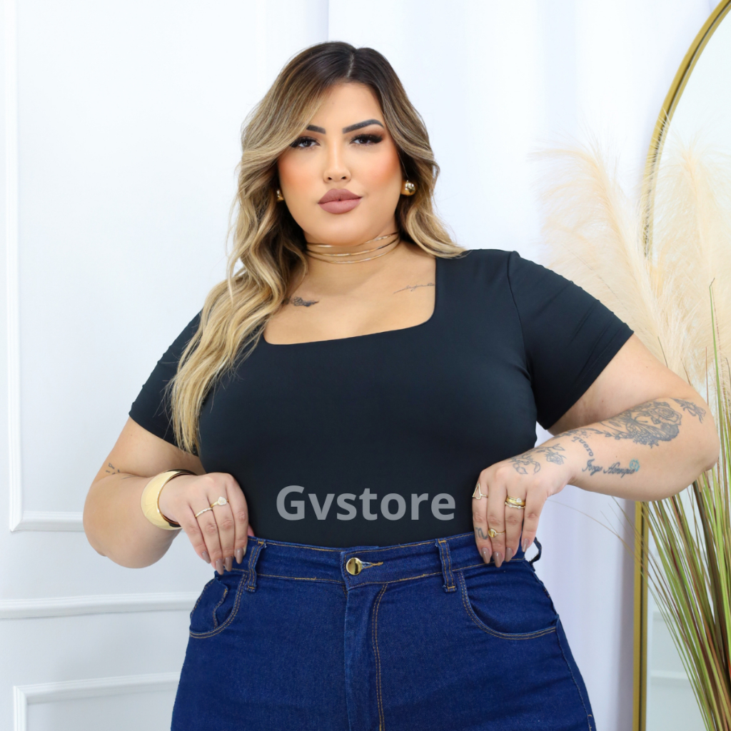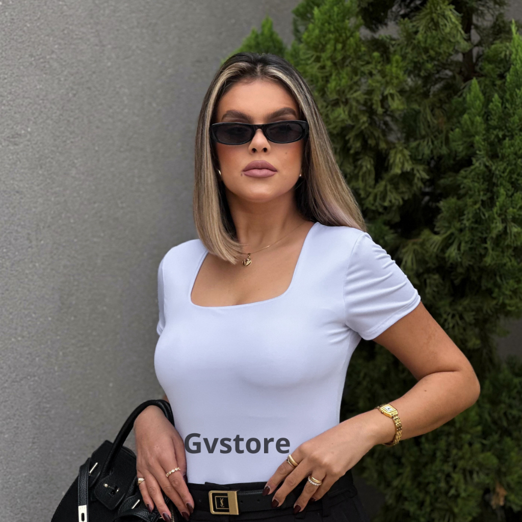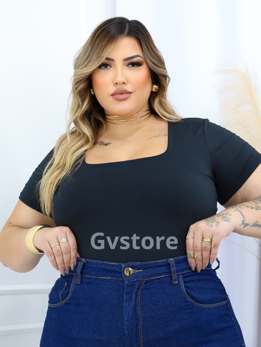 Blusa Manga Curta Feminina Suplex Basica Decote Quadrado Tshirt Premium Elegante Blusinha Plus Size