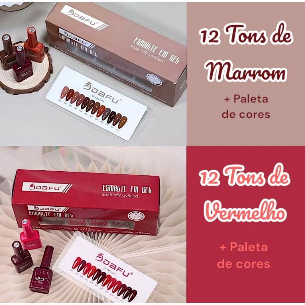 Kit 12 Esmalte Com Paleta Tons de Marrom ou Vermelho 10ML Cada - Dafu