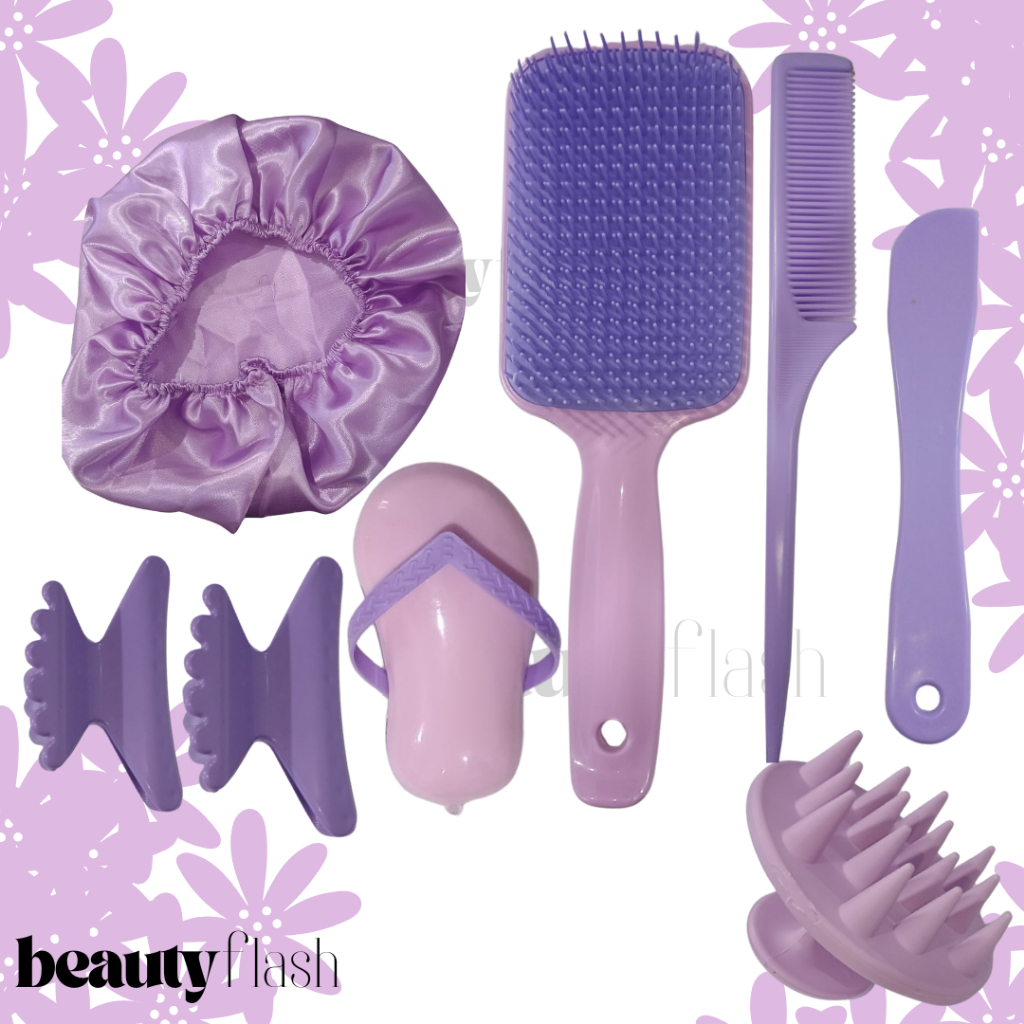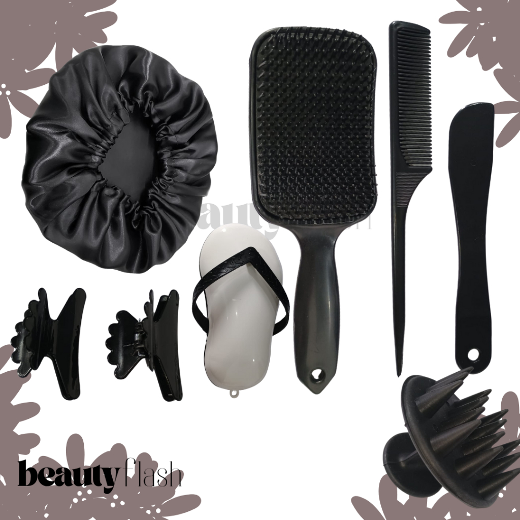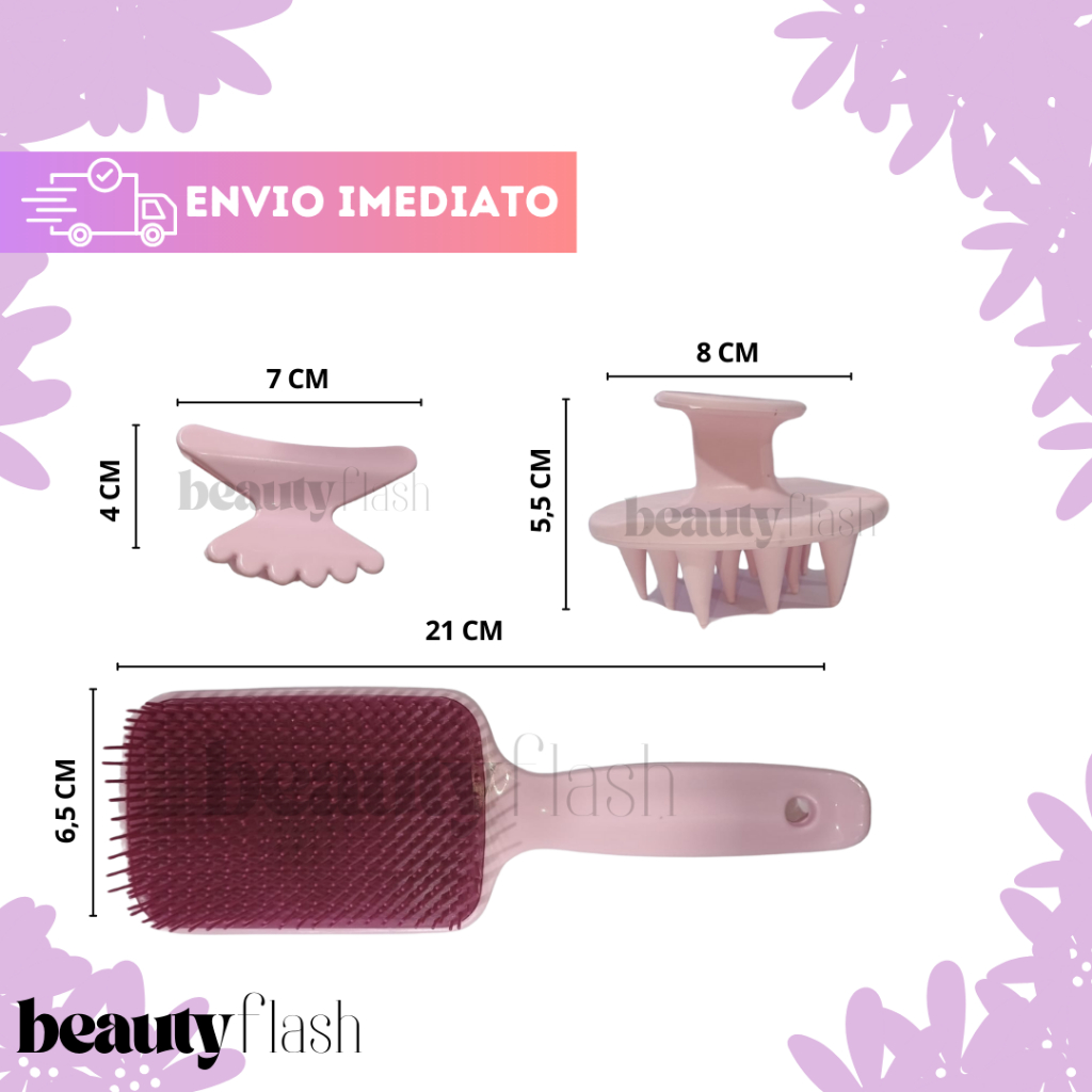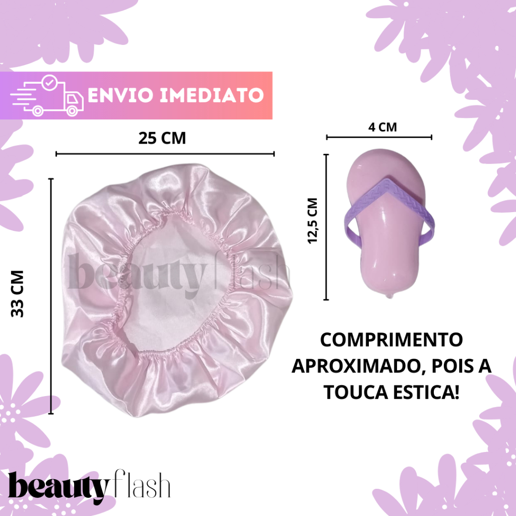 Kit Escova Massageador Touca de Cetim Pente e Presilha Beauty Flash Presente Especial para você