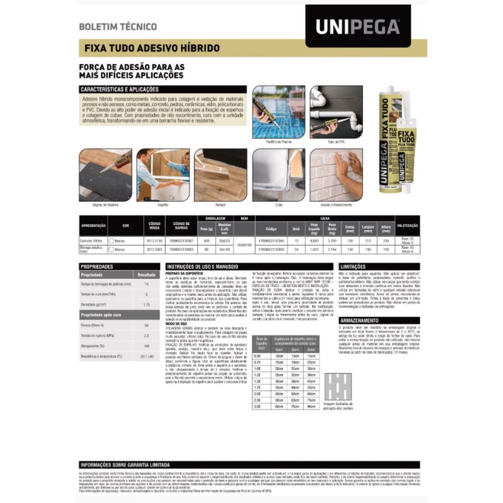 COLA FIXA TUDO ALTO PODER DE ADESÃO 280ML UNIPEGA SILICONE ADESIVO PROVA D'ÁGUA
