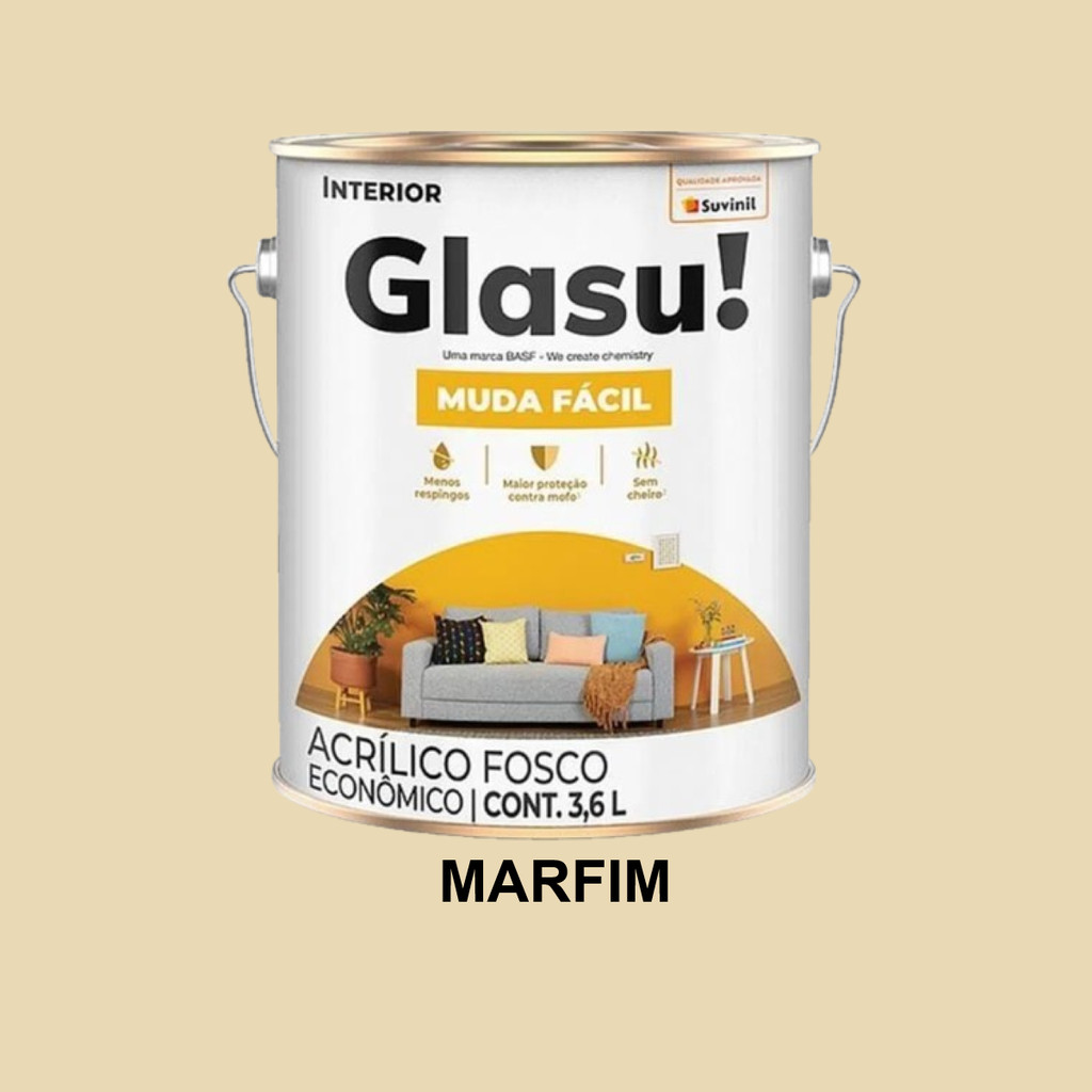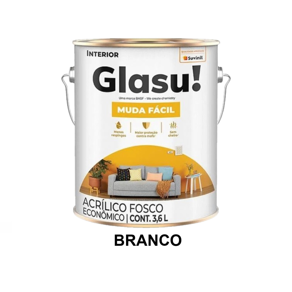 TINTA ACRÍLICA GLASU! MUDA FÁCIL 3,6L INTERIOR VÁRIAS CORES