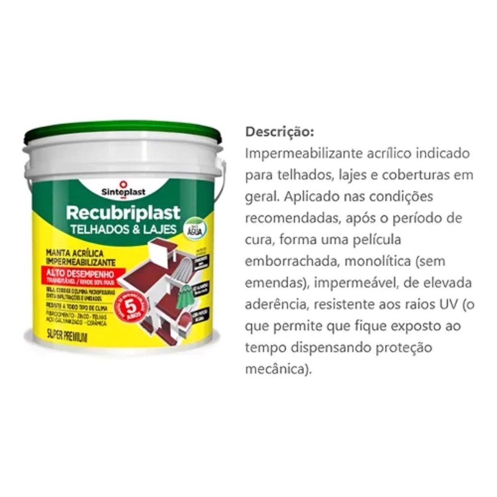 Manta Líquida Impermeabilizante Concreto 4kg Recubriplast Umidade Telhado Laje Infiltração Sinteplast