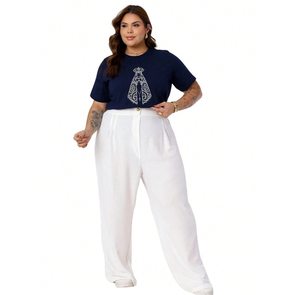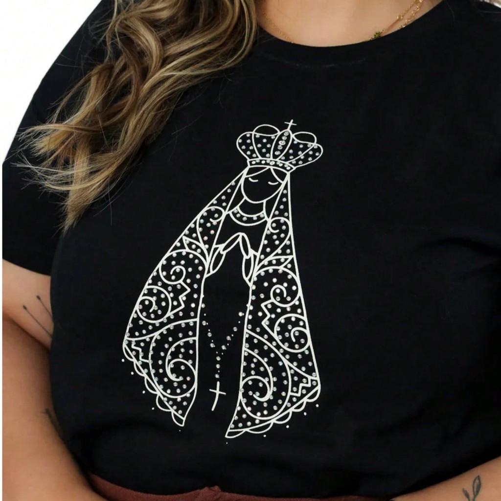 Blusa Feminina Plus Size de Algodão Nossa Senhora Aparecida