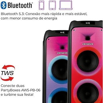 Caixa de Som Partybox Aiwa Pb-06 Bluetooth 20h RGB USB Tws