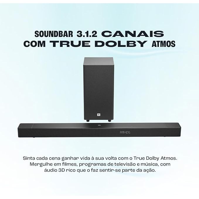 Soundbar JBL Cinema SB595 Wireless 3.1.2 Canais, Dolby Atmos, Subwoofer Sem Fio