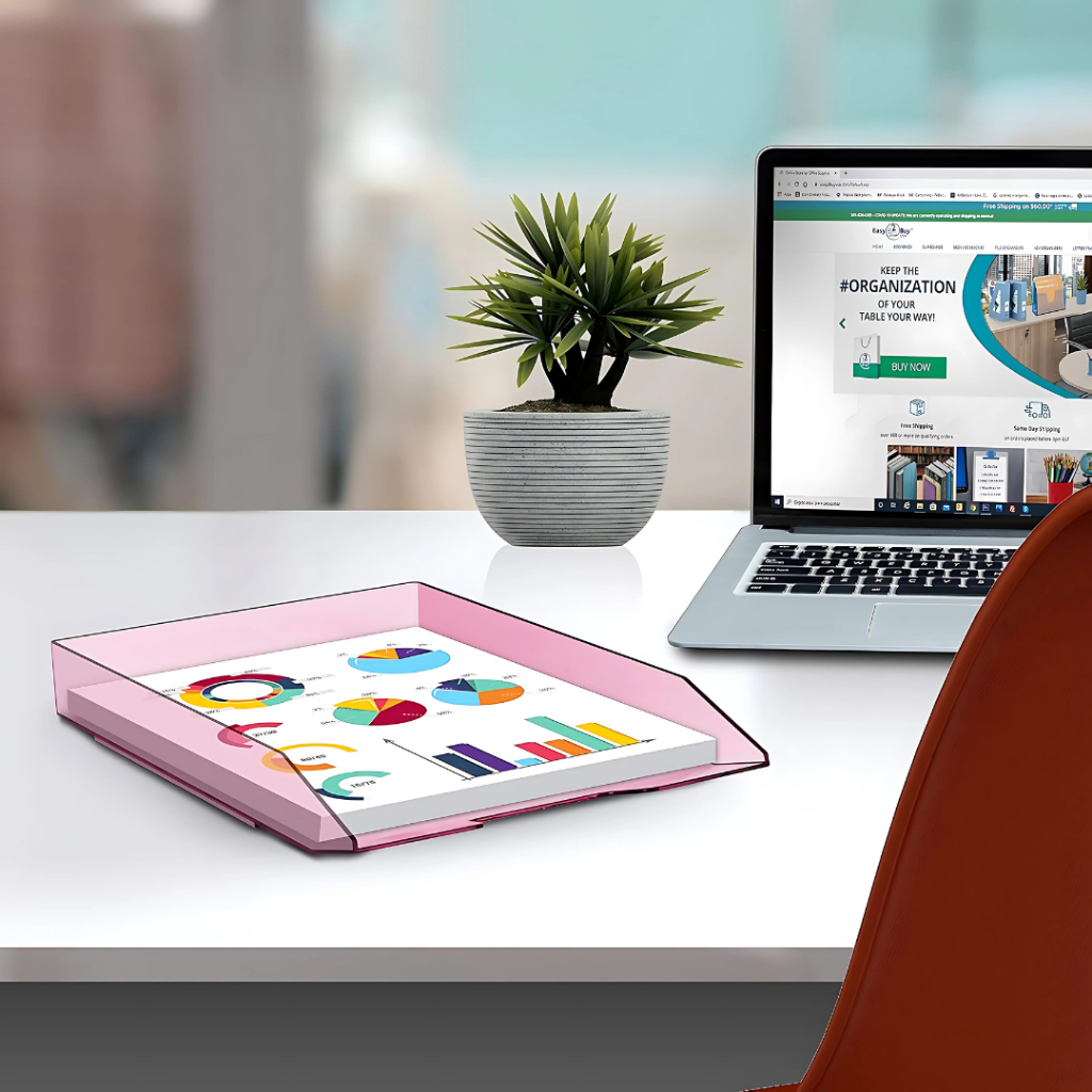 Caixa Para Correspondência Modular Acrimet Bandeja Organizadora Empilhável Escritório Rosa Clear 211