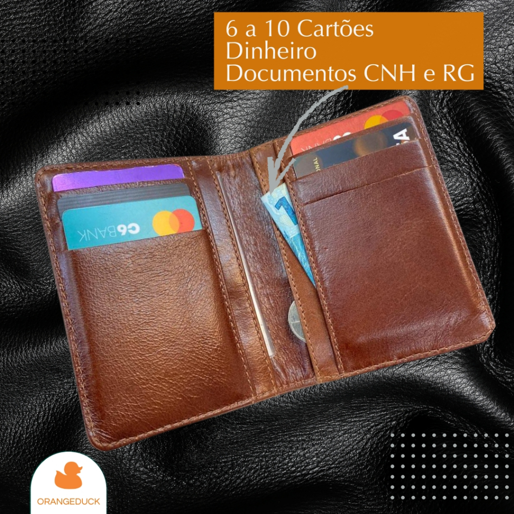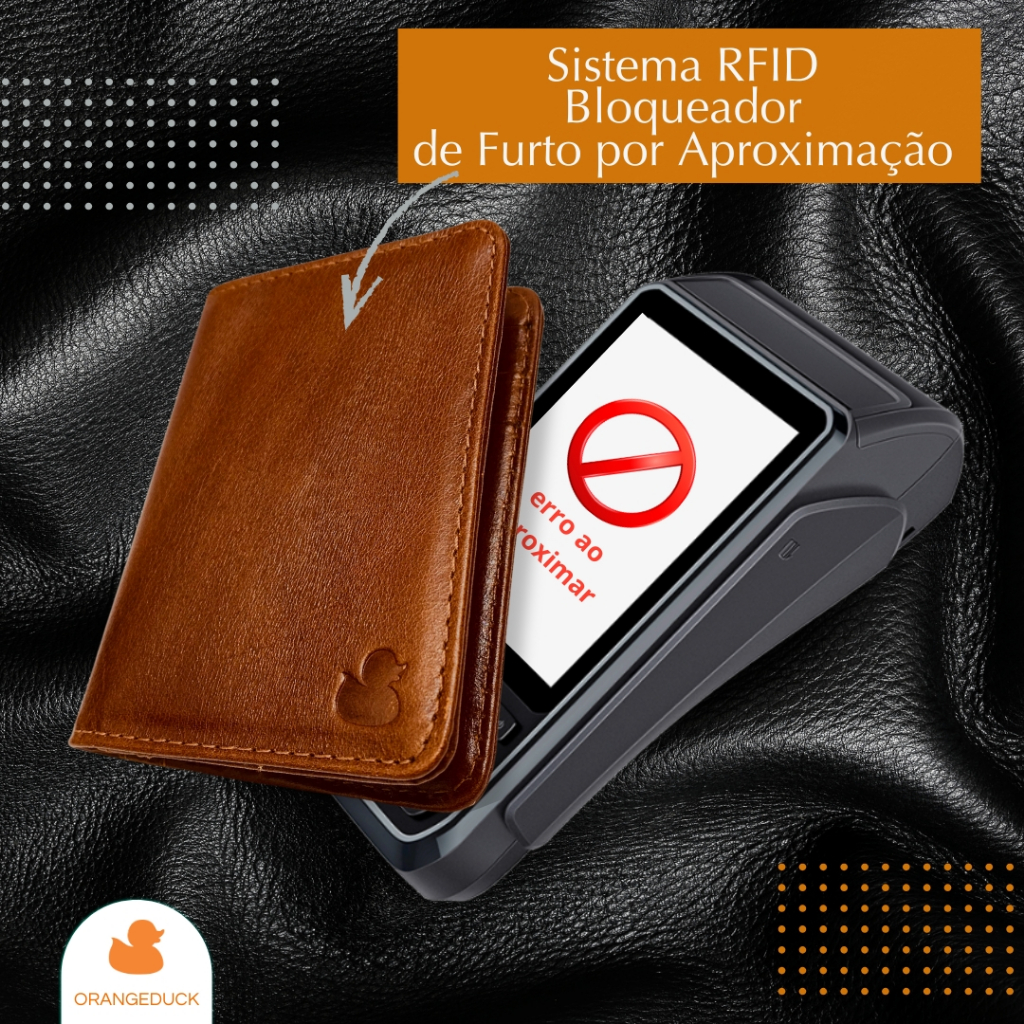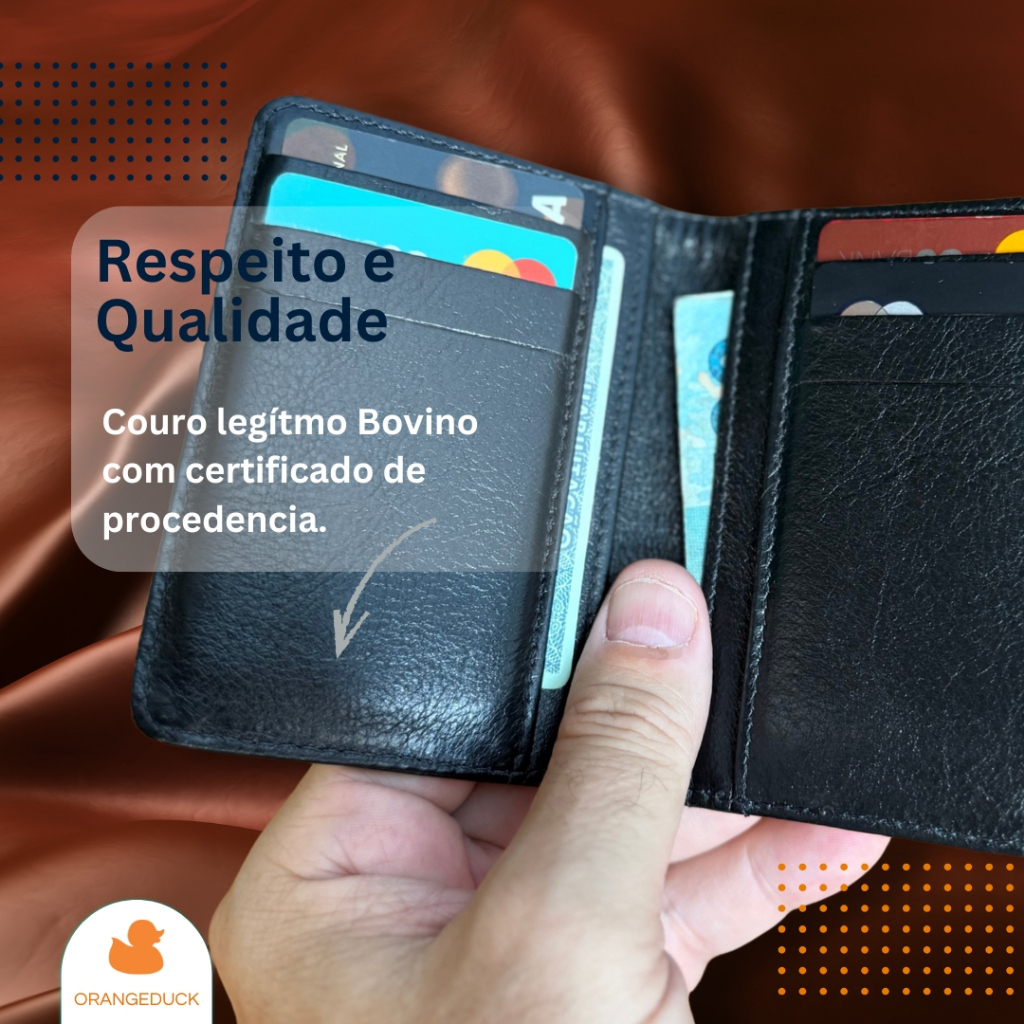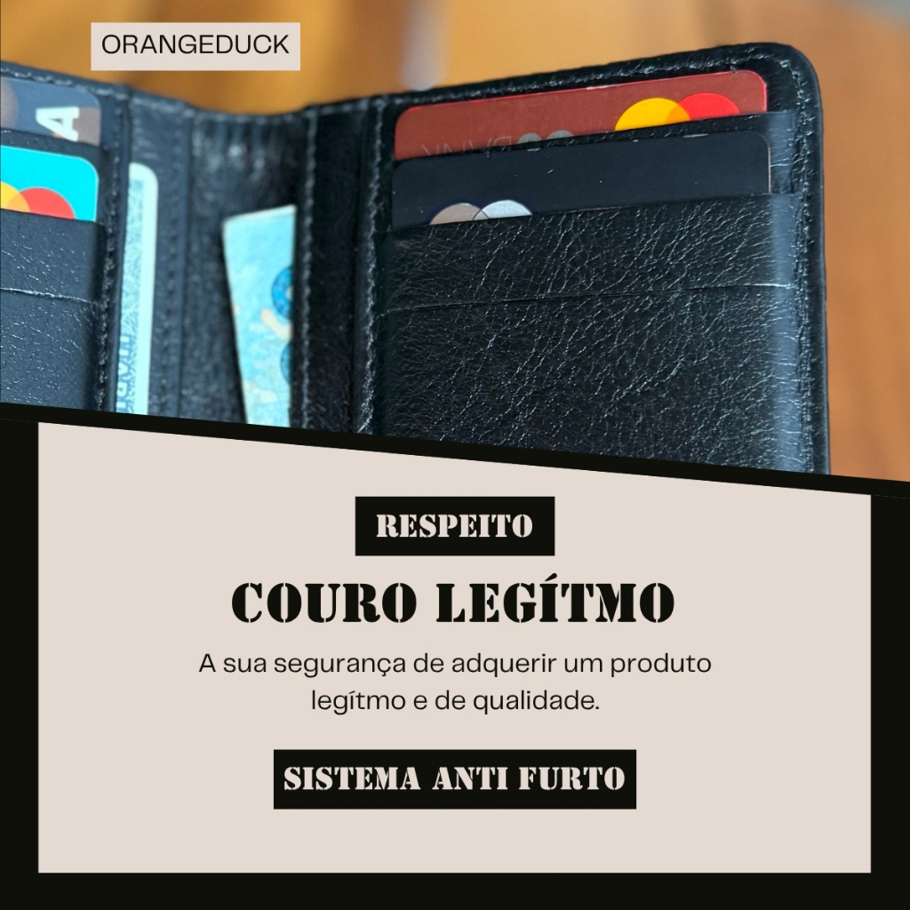 Carteira Masculina Couro Legítimo sistema Antifurto RFID Slim E Compacta