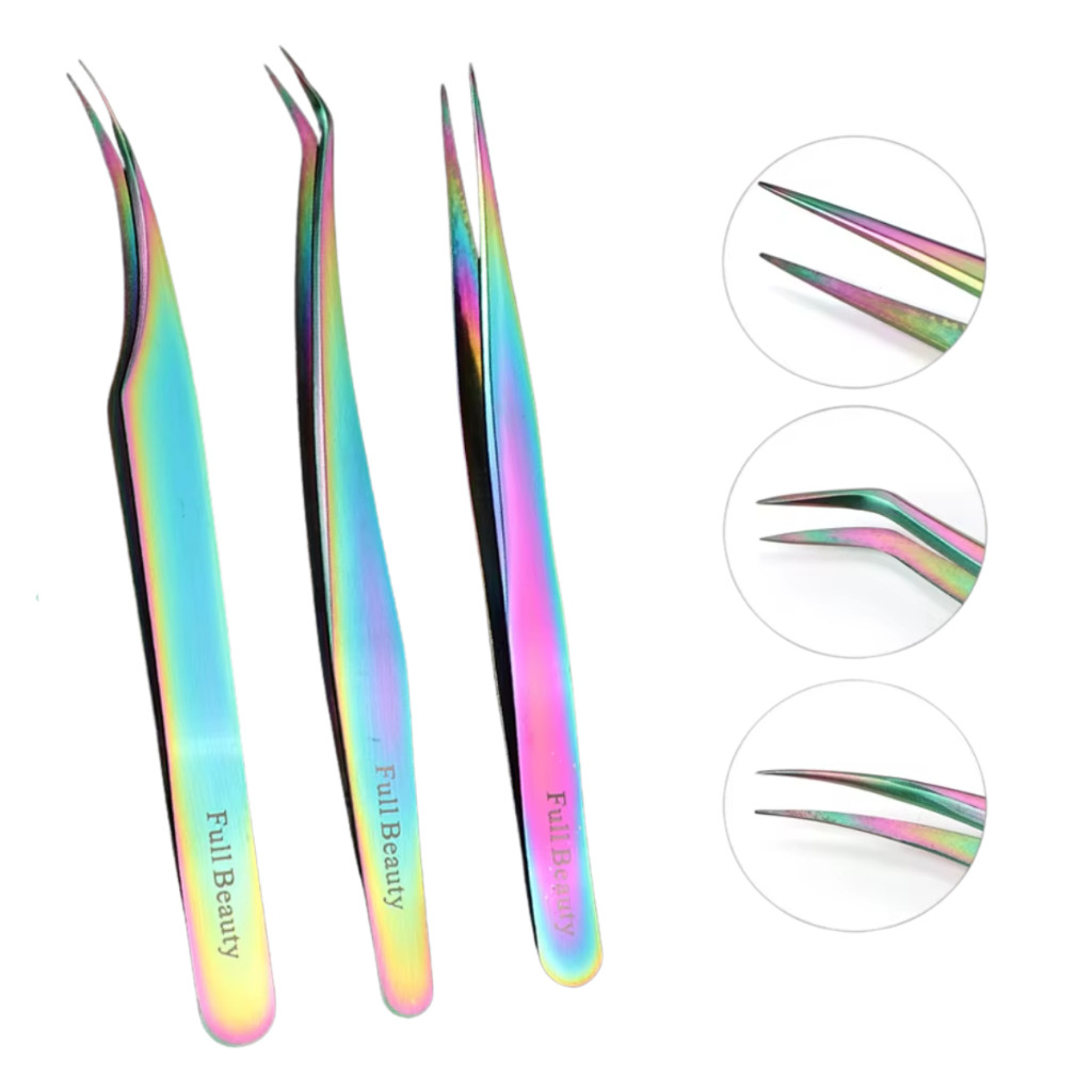 Kit 3 Pincas 45° Curvada Reta Extensao De Cilios,para extensão de cílios individuais 12-S