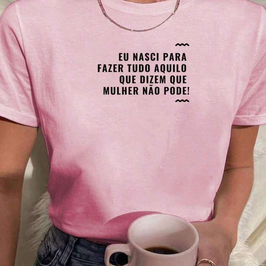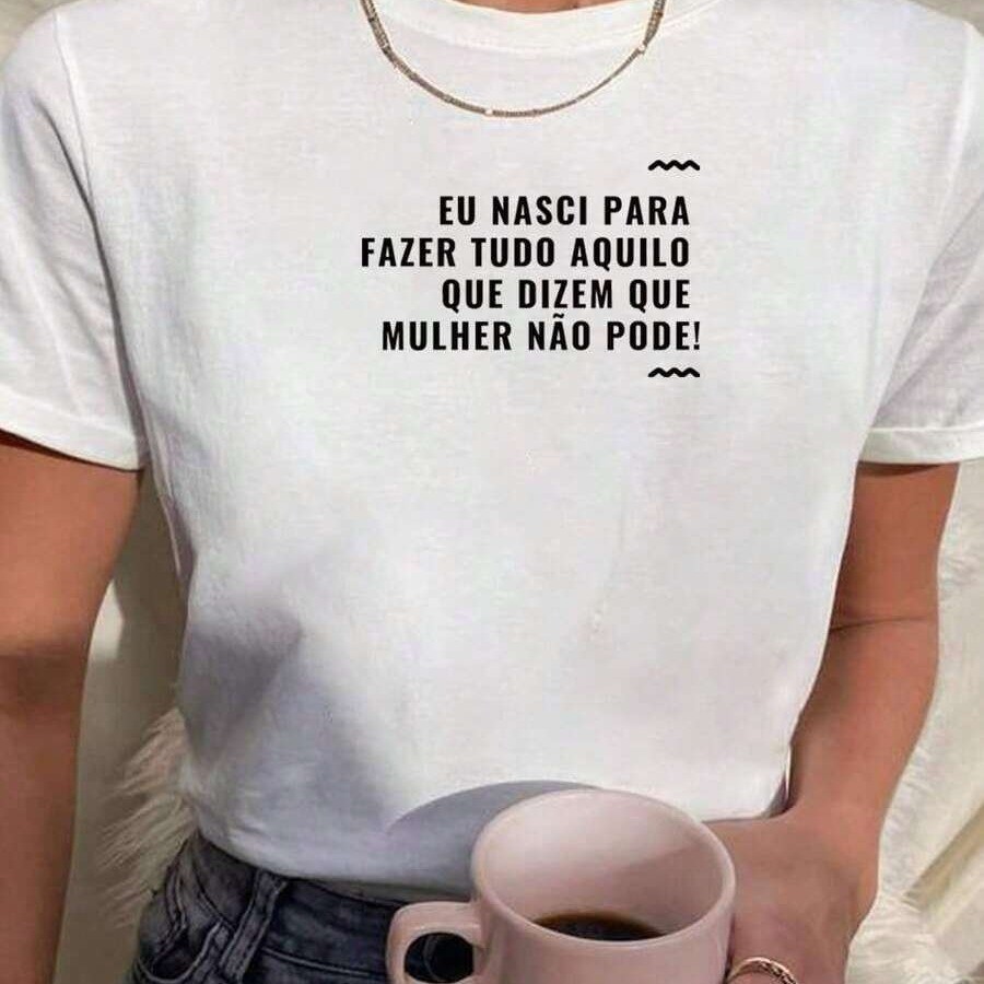 Camiseta Feminina com Estampa de Frase Feminista Camisa Blusa estampada 100% Algodão