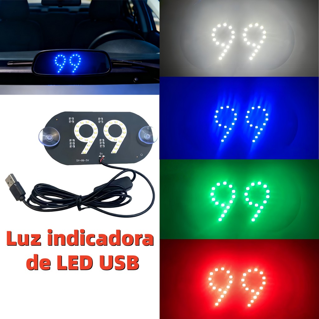 Luz indicadora do motorista, painel iluminado no para-brisa e luz indicadora de LED USB do veículo
