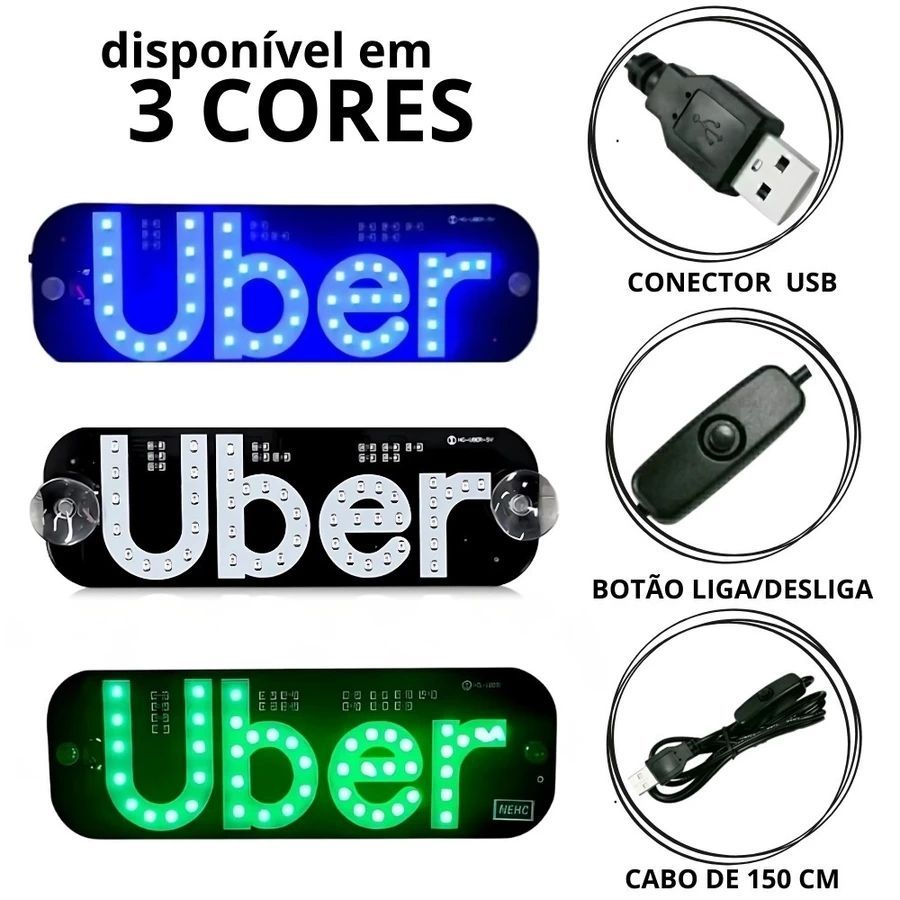 Placa Letreiro Aplicativo uber Letreiro Luminoso Led USB Com Botão Liga/desliga