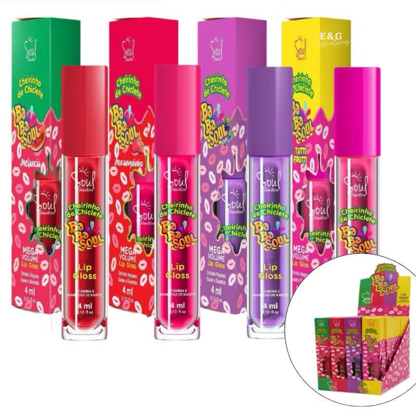 Kit Lip Gloss Babasoul Soul Cosméticos 4ml - Hidratante Labial - Efeito Volume - Brilho Espelhado