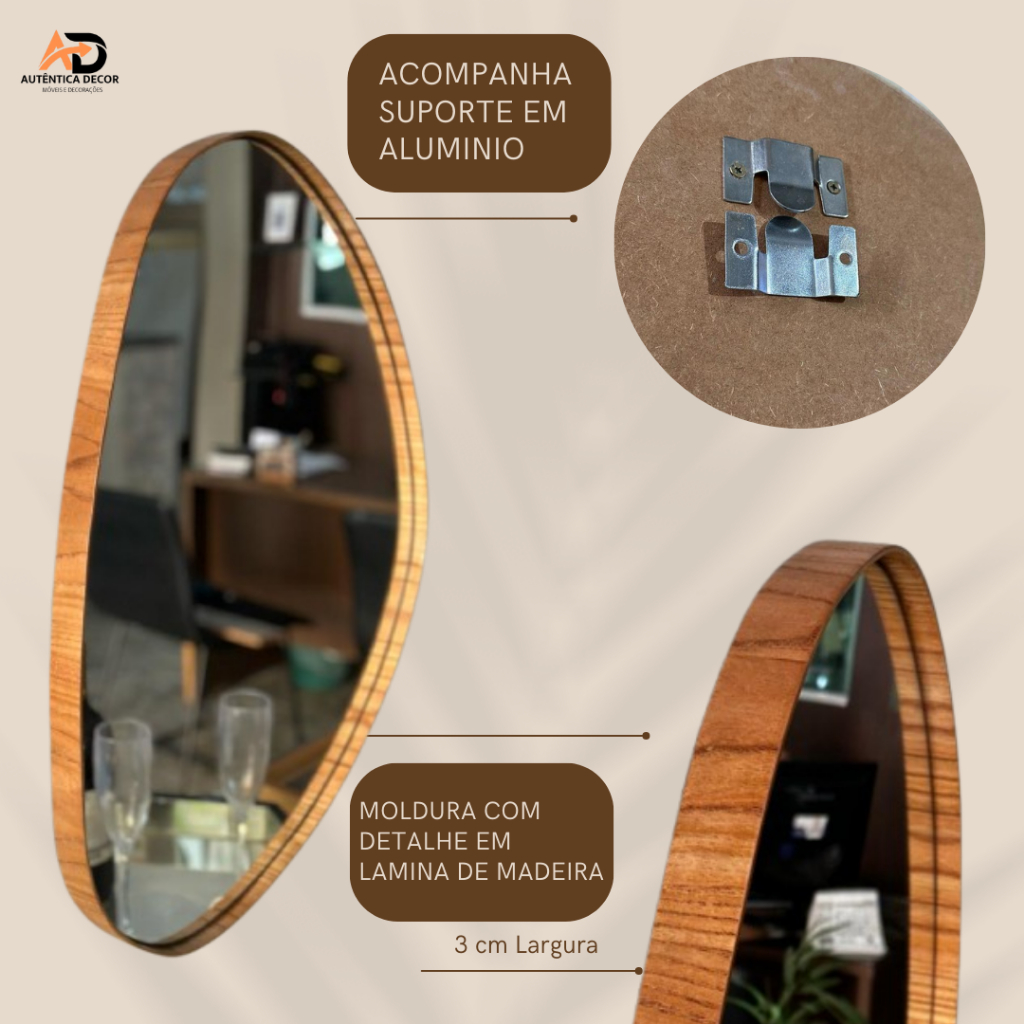 Espelho Orgânico Moldura em Lamina de Madeira Lançamento