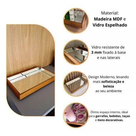 Bandeja Espelhada Decorativa Flutuante 50x30 varias cores
